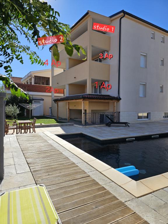 Descrierea condominiu este depășită de circumstanțele reale. Locația este ideală. Fie că este vorba de cumpărături, plaja, tenis de sport, restaurant, autobuzul la Zadar aveți nevoie de o masina. Totul a fost foarte curat, MobilAR simplu, funcțional și totul este curat și bine întreținute. Pero, fratele proprietarului, vorbește și înțelege limba germană (încet, vorbi clar) este de foarte mare ajutor. Care un hotel este prea zgomotos și impersonal, a mai rămas puțin pentru camping, dar de fapt vrea să se bucure de vacanță, care este în Mato și dreptul Pero. Ca o atractie deosebita ofera o excursie de o zi la Zadar, asculta-vă că pentru a se potrivi "Orga Mare" pe promenada de pe plajă. În caz contrar, am experimentat la restaurantele locale, nu doar dezamăgire, pret / performanta / serviciu-totul a fost perfect. Calitatea apei de un vis, cum ar fi plajă și insula. Punte de legătură continent de evaluare a erreichen.Meine ideale: cel mai bun mod de a o vacanta de vis