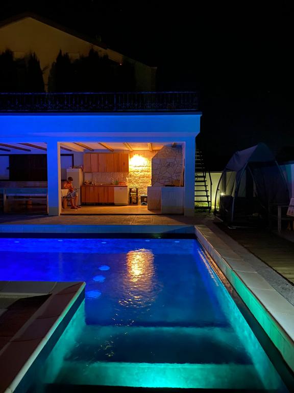 Locuința a fost în stare mai bună decât cea descrisă. Am fost foarte plăcut surprinși, deoarece unele camere au fost renovate, dar nu poze pe internet laudă. Vila se află într-o locație excelentă, am ajuns la fiecare destinație pe jos în câteva minute. Era foarte curat și ordonat, iar gospodăriile erau mereu la dispoziția ta pentru a răspunde la întrebări și preocupări. Au fost multe restaurante din apropiere și baruri pentru a vă stinge setea. Insula este potrivită pentru o vacanță de familie, precum și pentru o vacanță activă în sport. Chiar și tigrii de partid nu sunt prea scurți, deoarece în centru există câteva baruri care sunt întotdeauna umplute în sezon. O insulă foarte versatilă, care oferă ceva pentru toată lumea. De la jet ski, petreceri, divertisment pentru copii pe plajă, pentru a călători în continuare spre satele din apropiere, cum ar fi Zadar, Krk, Split și multe altele Seara am petrecut adesea ore în Steinpavillion pentru grătare, unde familia gazdă ne-a vizitat și am făcut o seară distractivă. Pentru acest preț - un cadou! Foarte recomandat! Vom reveni anul viitor