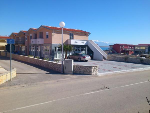 Apartamente și studiouri moderne. Nisip și plajă cu pietriș (Crystal Clear) este la o plimbare de 2 minute. În centrul orașului este la 10 minute distanță. Locuri de parcare mari. Ne sunt situate în partea de nord a insulei. Toate apartamentele și studiourile au o vedere la mare, Pag și Velebit.