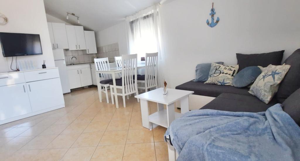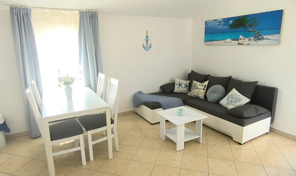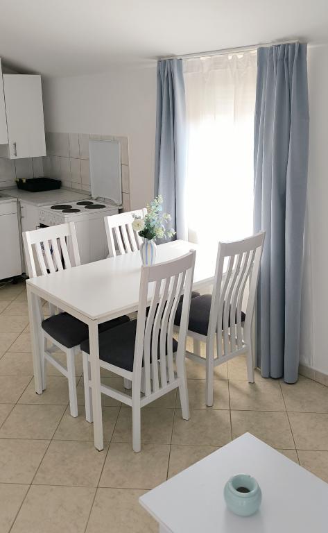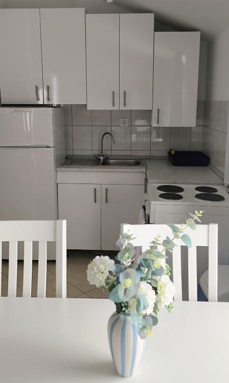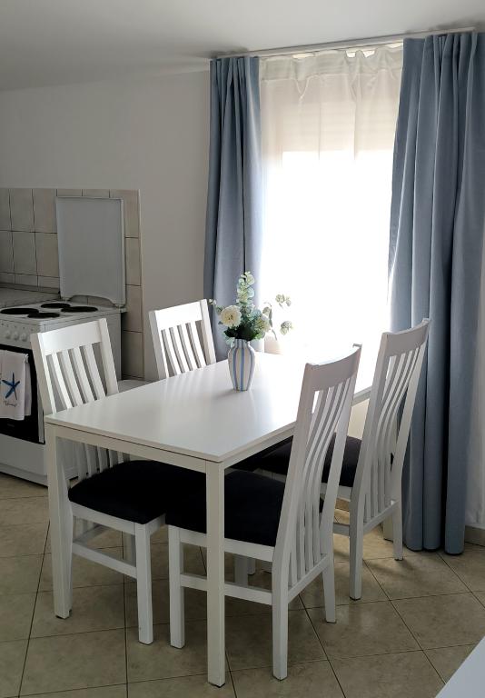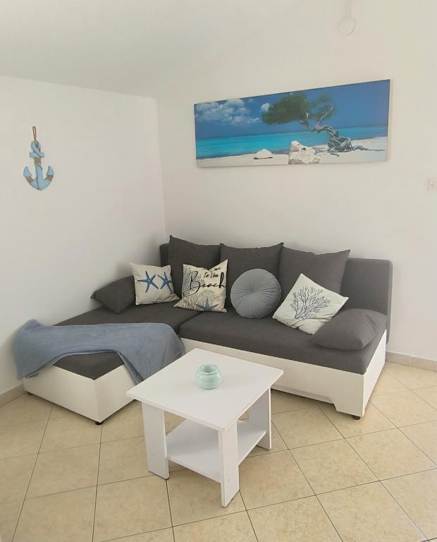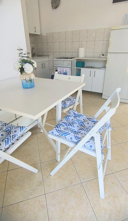 Bine ați venit în casa noastră de pe frumoasa insulă Vir! Va oferim doua apartamente confortabile si o garsoniera, perfecte pentru o vacanta linistita si relaxanta. Suntem situati la doar 150 de metri de marea limpede, pe o strada linistita de familie, cu foarte putin trafic, ideala pentru familiile cu copii si toti cei care vor sa scape de aglomeratia orasului. Casa este înconjurată de flori colorate, bine întreținute, care oferă o senzație de căldură și o atmosferă familiară. Este disponibilă parcare privată gratuită, astfel încât nu trebuie să vă faceți griji pentru vehiculul dumneavoastră în timpul șederii dumneavoastră. În apropiere există un supermarket și o brutărie, permițându-vă să faceți cumpărături ușor și rapid în timpul vacanței. Centrul orașului Vir este la 3 km, iar în fiecare seară există divertisment pentru copii și adulți - ideal pentru cei care doresc să-și completeze ziua cu distracție. Insula Vir este cunoscută pentru numeroasele sale plaje frumoase, golfurile ascunse și marea limpede, perfectă pentru a explora și a te bucura de zilele însorite. Pentru excursii de o zi, există numeroase atracții în apropiere: Frumosul oraș istoric Nin este la doar 10 kilometri distanță Muzeul Național Zadar este la 25 km distanță celebra instalație Salutarea soarelui din Zadar este la 26 km distanță Aeroportul Zadar este la 34 km distanță Dacă sunteți în căutarea unui loc pentru o vacanță adevărată, departe de zgomot, dar aproape de mare și apartamentele noastre sunt alegerea potrivită pentru dvs.!