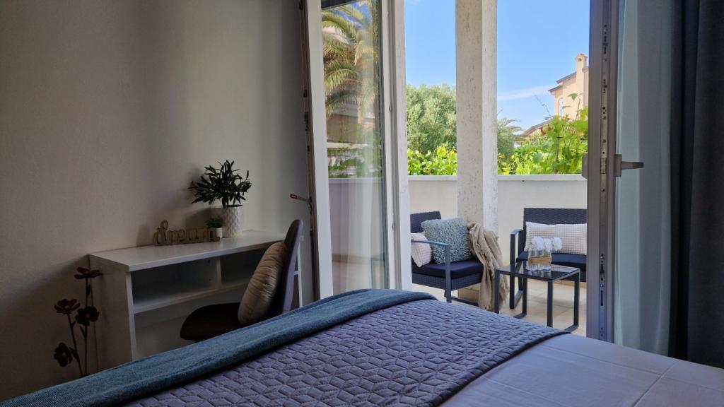 Apartamentul este mobilat nou, cu o terasa spatioasa excelenta. Puteți folosi și grătarul, care se află la umbră sub măslini. Este oferit un loc de parcare spatios. Gazdele sunt extrem de prietenoase și de ajutor. Acestea fiind spuse excelent, una dintre cele mai bune, dacă nu cele mai bune vacanțe vreodată. Ne vom intoarce
