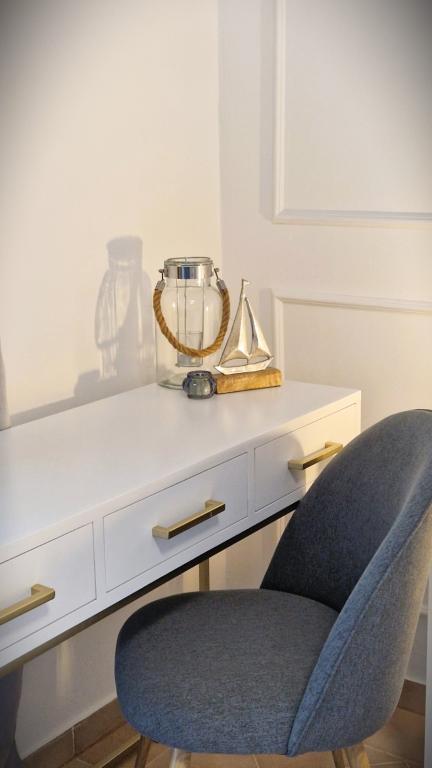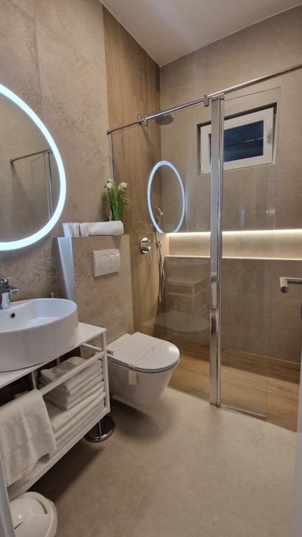 Locație frumoasă, cu un apartament cu aer condiționat și o terasă imensă cu vedere la mare. Apartamentul are de toate. Bucatarie complet utilata cu tot ce aveam nevoie. Dormitorul are cel mai confortabil pat, baia este spațioasă și frumos decorată. Am fost foarte multumiti de curatenie pentru ca totul este cu adevarat curat. Asteptam cu nerabdare cafelele de dimineata pe terasa cu vedere la mare si la frumoasa gradina verde, iar copiii si-au dorit mereu sa manance doar pe terasa pentru ca le-a fost frumos. Gazdele sunt extrem de prietenoase și de ajutor. Ne-am petrecut foarte bine vacanța, pentru că ne-am odihnit într-adevăr într-o locație atât de excelentă. Laudă!