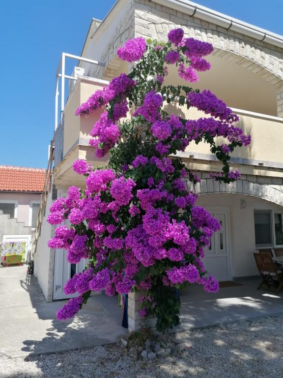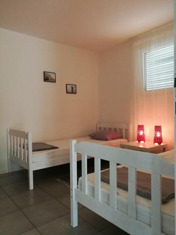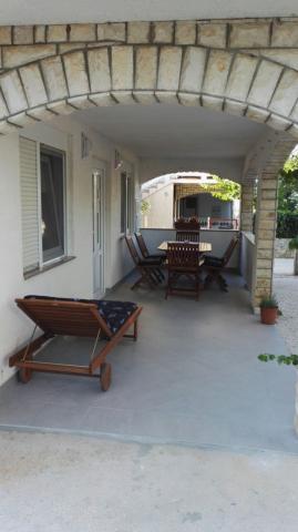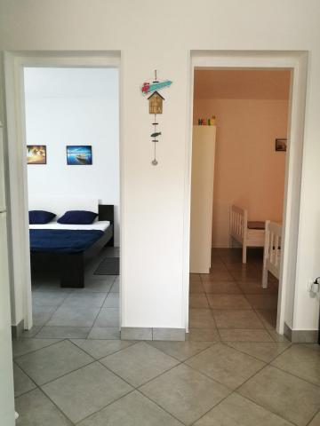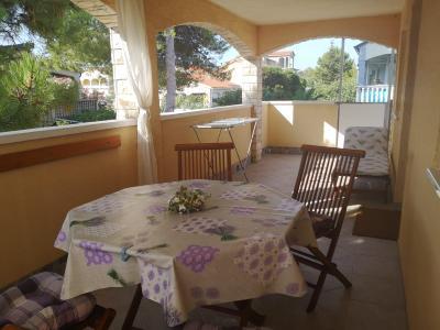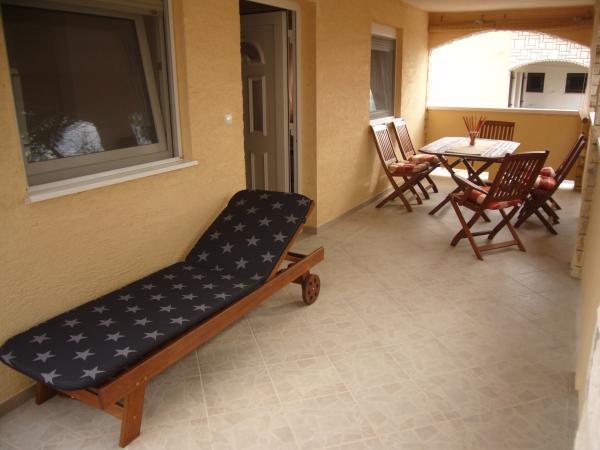 Apartamentele sunt situate într-o parte mai liniștită a insulei. Aplicația 2 2 este situată la primul etaj, are vedere parțială la mare și o terasă mare. Aplicația 4 2 este situată la parter și are o terasă mare. Sunt asigurate 2-3 locuri de parcare. Este potrivit pentru familiile cu copii datorită curții împrejmuite și a proximității plajei (la 200 de metri de apartament).