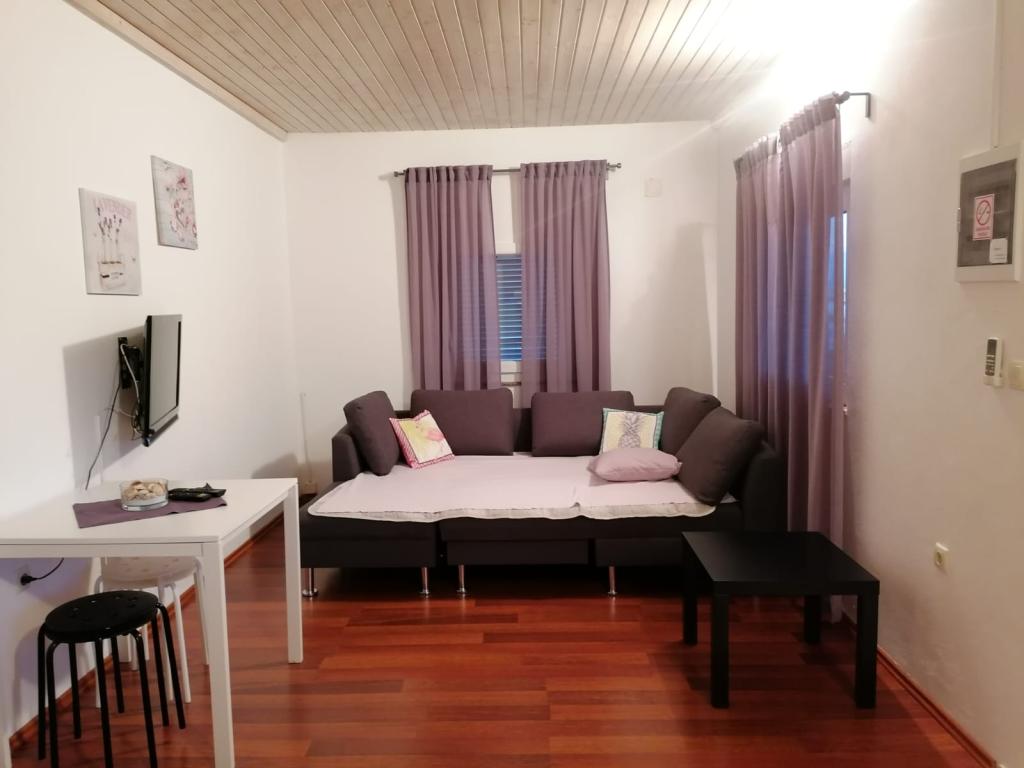 Apartamentul a fost special și foarte curat. Perfect echipate - în bucătărie veți găsi tot ce este necesar pentru a pregăti o cină, plasele de țânțari se află în ferestre, iar prosoapele sunt în culori diferite (ceea ce mi-a plăcut cel mai mult), fără a mai ghici care dintre cele 4 prosoape albe din a mea) . Există doar 2 apartamente în casă și proprietarul (foarte util și prietenos) este la fața locului, astfel încât să nu vă simțiți ca un furnizor de numerar fără nume, ci ca un oaspete așteptat. Casă situată în partea non-aglomerată, liniștită din Vir, fără discoteci, supermarketuri sau restaurante din jur.