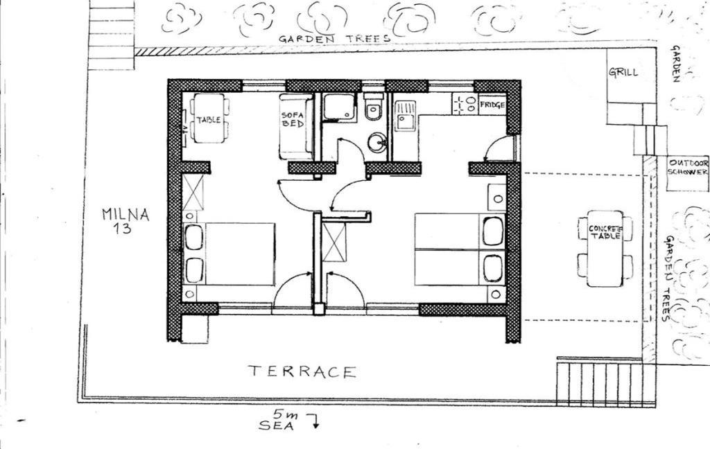 Întreaga casă este de închiriat, la 5m de mare: locație excepțională - primul rând la mare, golful Milna (insula Vis), ideală pentru o familie. Casa este individuală, cu o suprafață interioară de 50m2, înconjurată de o terasă de 60m2 și o grădină (150m2) cu verdeață care vă oferă intimitate și o vacanță plăcută. Chiar lângă casă, la 5 metri de terasă, puteți înota, face scufundări sau sări în mare. La întoarcerea de la mare, există un duș exterior. Pe terasă există două șezlonguri, un grătar și o masă de beton pentru a sta și a lua masa cu vedere la marea albastră, de care vă puteți bucura toată ziua. O parte a terasei de deasupra mesei și a grătarului este acoperită, oferind umbră/protecție pe tot parcursul zilei. Casa este climatizată, are internet Wi-Fi nelimitat, televizor LCD, aragaz cu fierbătoare pe gaz și electrice, frigider mare (250 litri) cu congelator și tot ce este necesar pentru gătit/copt și servire. Parcarea privată se află la 250 m de casă: de-a lungul coastei, până la casă, există o alee betonată (lățime de 2-3 m). Disponibilă: până pe 10.06.; 24.06. - 5.07.; și de la 20.08.