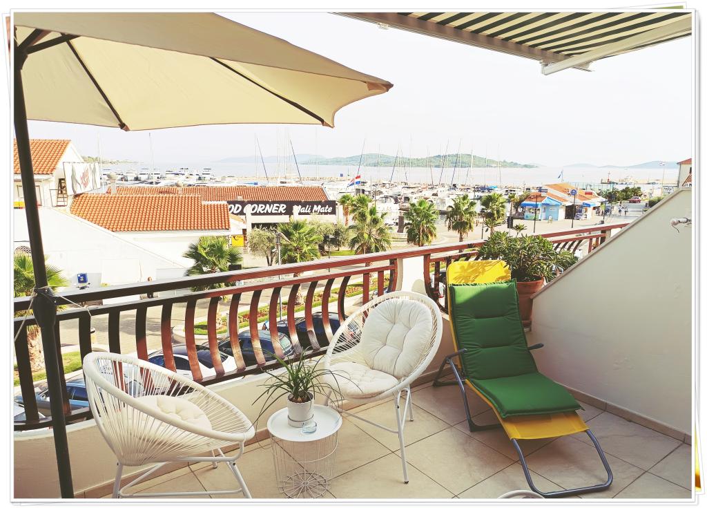 Apartamentul este în centrul orașului Vodice, are un living cu o canapea, bucătărie, două dormitoare duble + un pat mare + un pat pentru copii, două băi cu dușuri, două încălzitoare de apă, două aparate de aer condiționat, două ventilatoare de tavan, o terasă cu vedere la mare, port, parc. Este complet echipat pentru un sejur mai lung (internet, mașină de spălat, mașină de spălat vase, bucătărie, prosoape, uscător de păr, fier de călcat). Se află la aproximativ 350 m de plaja de vest sau de est. https://youtu.be/boq1Agcy7bs