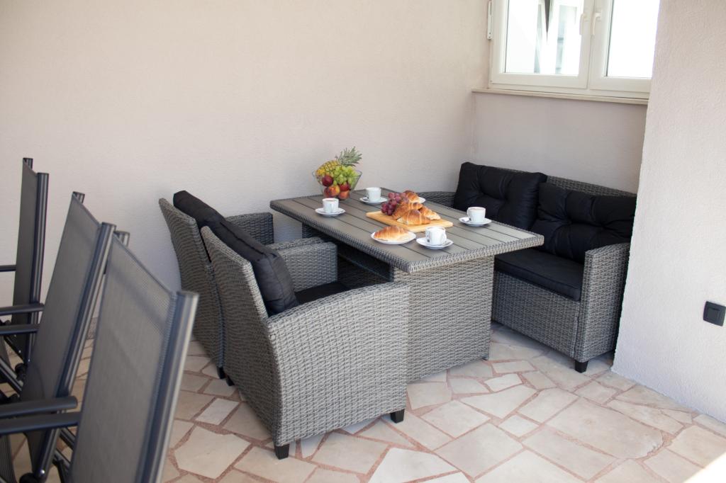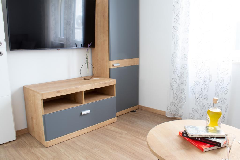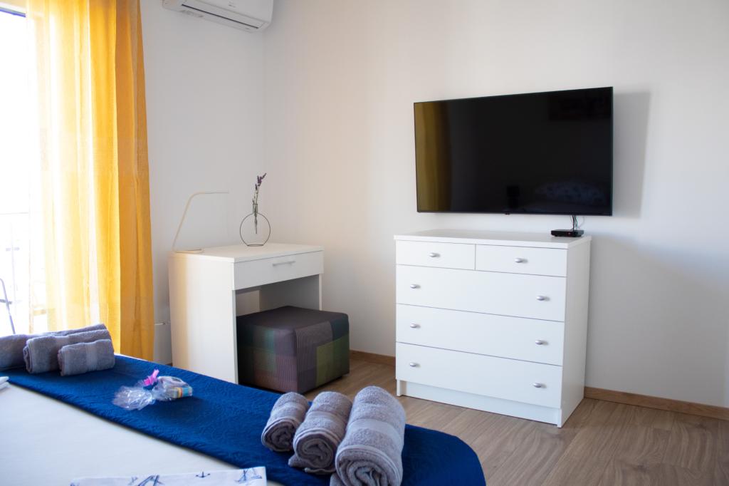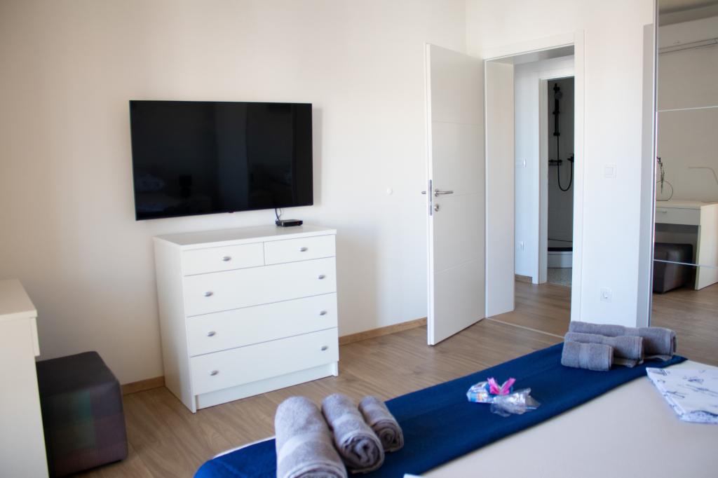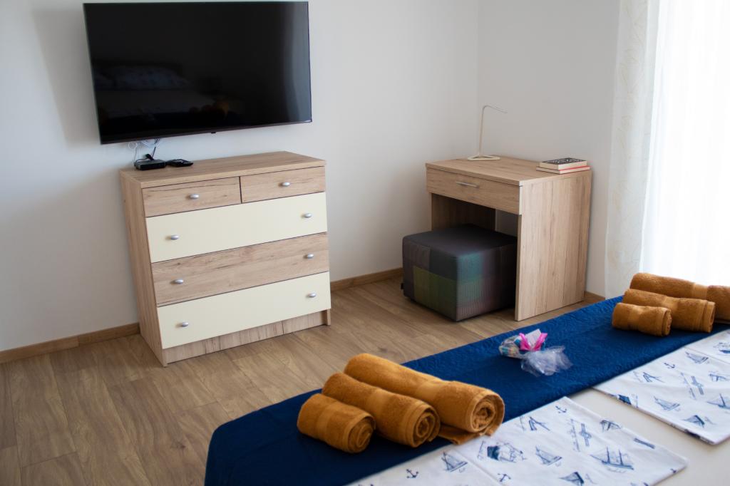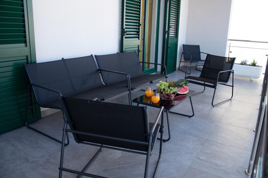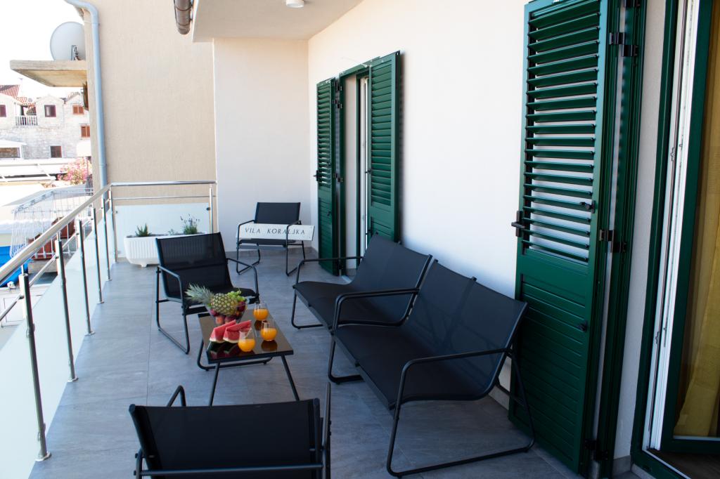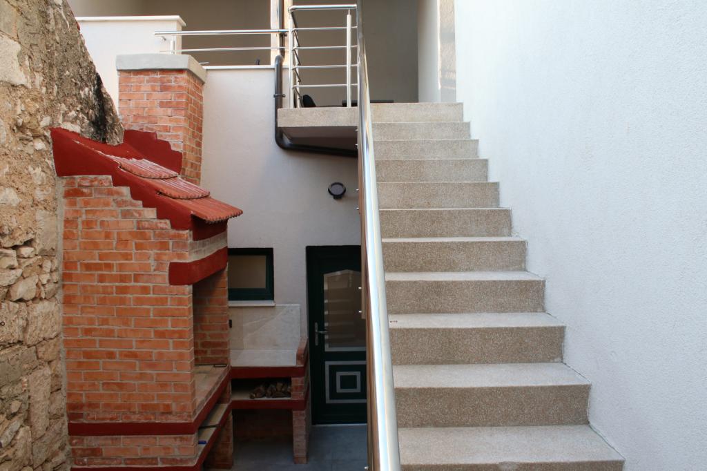 Un apartament spațios cu trei camere, cu o terasă, un balcon mare și un loc de parcare privat, ocupă întreg etajul 1 al unei case recent renovate complet pe strada principală din centrul orașului Vodice. Este perfect situat în imediata apropiere a portului ACI, între două plaje mari ale orașului. La 100 de metri puteți găsi piața orașului, piața de pește, magazine, oficiu poștal, bancă, brutărie, farmacie, clinică, cluburi de noapte și multe cafenele și restaurante. Apartamentul este format din două dormitoare cu un pat dublu mare, un dulap glisant, un birou și un smart TV mare, un living dotat cu o canapea extensibilă mare, un dulap și un smart TV mare, o bucătărie complet utilată (frigider cu adâncime). congelator, aragaz cu cuptor, cuptor cu microunde, mașină de spălat vase, aparat de cafea, ceainic) cu sufragerie, baie (chiuvetă, duș, mașină de spălat) și toaletă separată. Toate camerele sunt dotate cu aer condiționat. Terasa interioara (25m2), balcon mare cu vedere la mare si gratar in curte