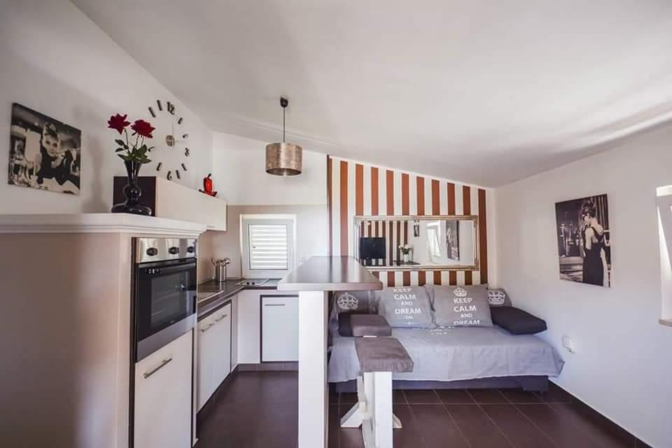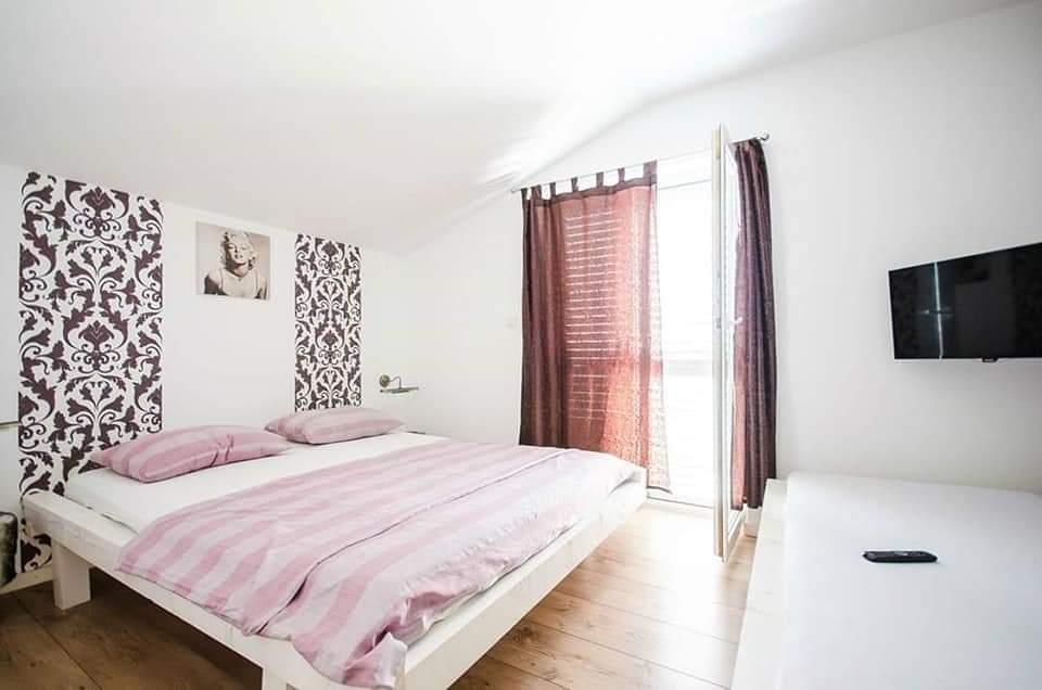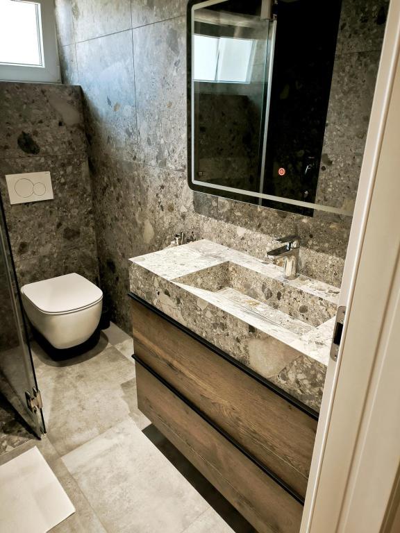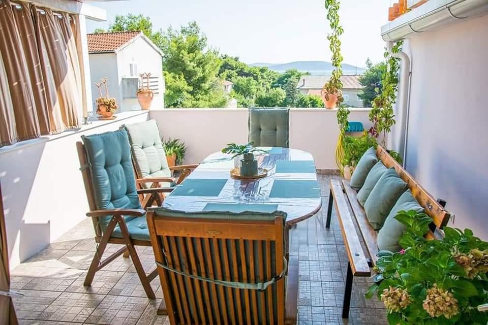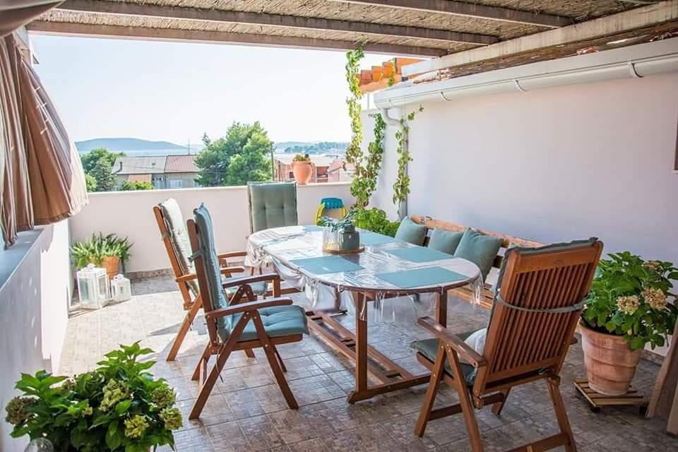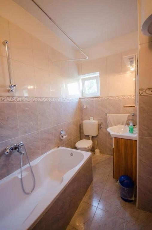 Apartamente complet mobilate, situate într-o zonă liniștită din Vodice, situate în al doilea rând de la mare. Facilitatea este situată la 3 minute de mers pe jos de plaja principală și la 10 minute de centru... Avantajul apartamentelor noastre este că totul este aproape de casă, deci nu este nevoie să folosiți mașina... Apartamentele au o terasă frumoasă și mare, de pe care puteți vedea marea, insulele și centrul... Întregul etaj poate fi închiriat pentru 9 persoane, ideal pentru o familie numeroasă....