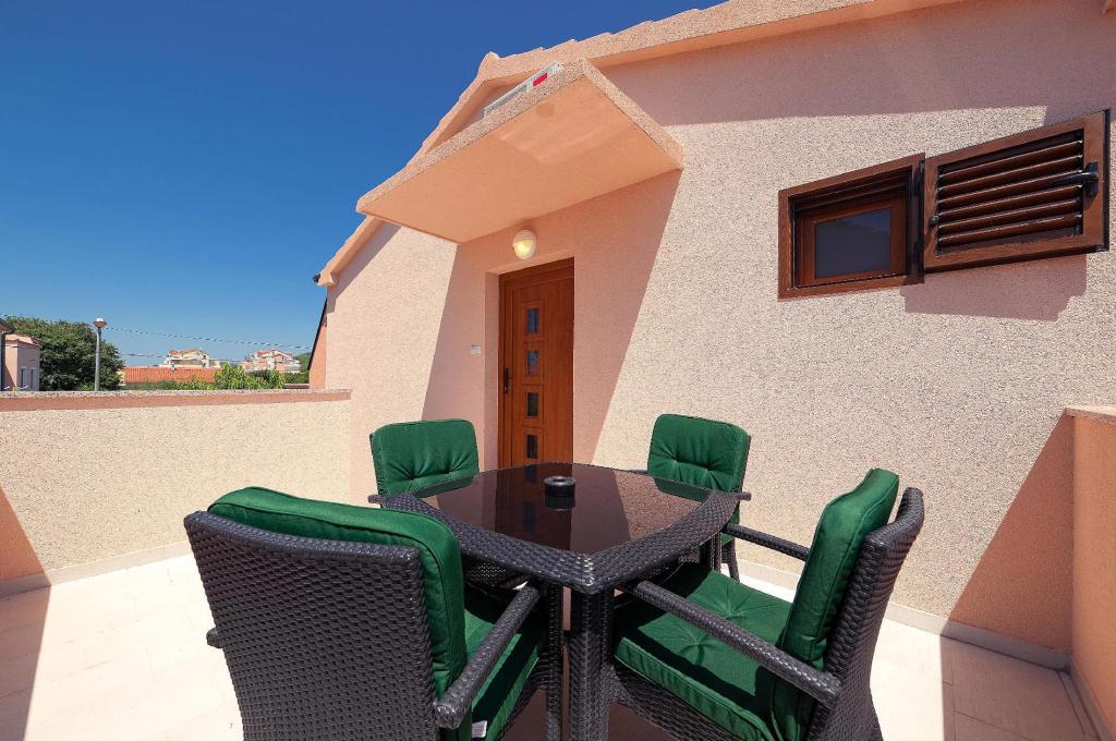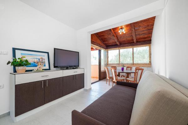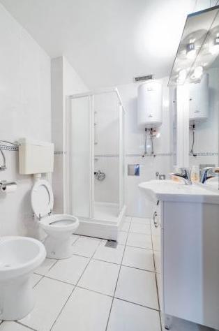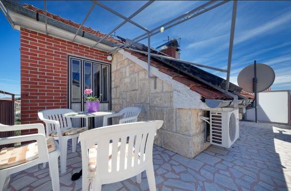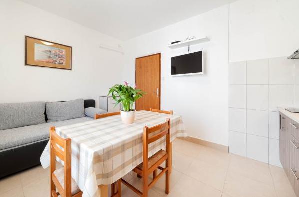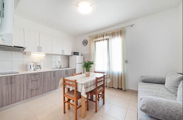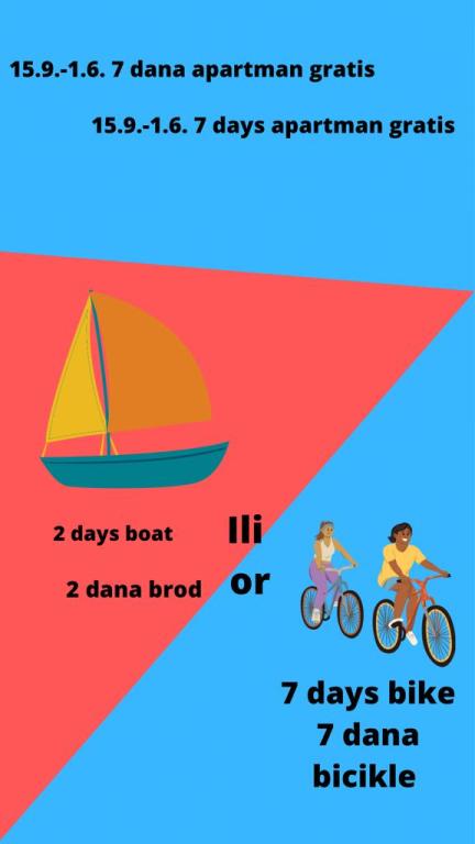 Apartamente complet și modern echipate într-o zonă liniștită din Vodice, situată la 300 de metri de mare. Unitatea este situată la 5 minute de mers pe jos de Blue Beach și Hotelul Punta și la 15 minute de centrul orașului Vodice. Pe plajă se află cel mai mare parc acvatic de pe Marea Adriatică, destinat copiilor și adulților. Oferim cazare de calitate in apartamente noi, complet echipate si moderne. Apartamentul de la etaj de 48 m2 este compus dintr-un dormitor, o baie cu dus, o bucatarie cu sufragerie, un living cu pat, doua terase cu vedere la mare, doua receptoare LCD TV/SAT, aer conditionat, internet WiFi gratuit și loc de parcare. Apartamentul mai mare de la parter, cu o suprafață de 70 m2, este format din două dormitoare, baie cu duș, bucătărie, sufragerie, living cu pat, două terase mari, trei receptoare LCD TV/SAT, aer condiționat, internet WiFi gratuit și două parcări. spatii.
