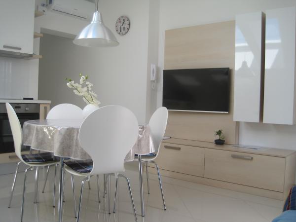 Casa de familie cu apartamente moderne, cu vedere la mare din toate apartamentele. Apartamentele au un loc de parcare garantat în fața clădirii. Acesta este situat lângă mare și la 300 de metri de plajă oraș faimos sub hotel Olympia.