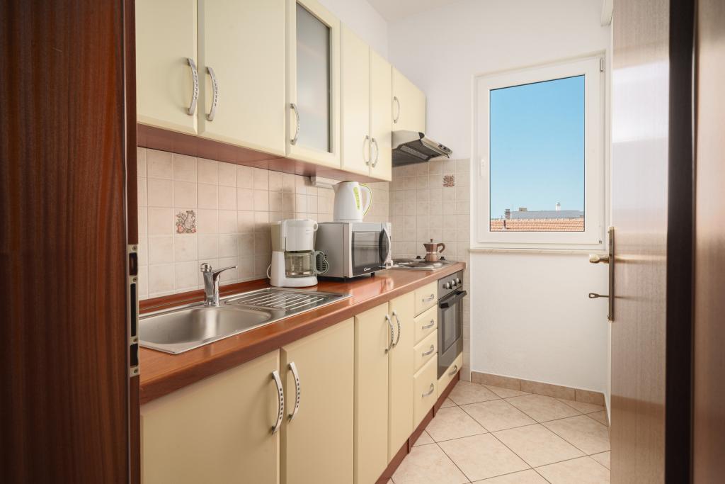 Departe de clădirile vecine, în mijlocul unei curți mari, apartamente foarte bine întreținute și bine echipate sunt situate într-o zonă liniștită și liniștită din Vodice, unde foșnetul pinilor și cântecul greierilor sunt cel mai puternic zgomot pe care îl veți auzi. INCLUS ÎN PREȚ: aer condiționat, internet wireless, mașină de spălat, taxă de turist, SAT-TV, utilizarea grătarului cu o terasă mare, parcare mare în curtea împrejmuită. Fiecare apartament are o terasă cu masă și scaune, un dormitor separat, iar apartamentul A4 are două dormitoare separate. Bucătăriile din ambele apartamente sunt identice și bogat utilate. Plajele orașului, foarte frumos decorate, sunt potrivite pentru copii și pentru cei care nu știu să înoate. Centrul orașului poate fi accesat printr-o plimbare ușoară de 15 minute. Apartamentele sunt situate în apropierea hotelurilor Imperial și Olimpya. Nu uitați să aduceți cu dumneavoastră doar DORINȚA DE A VĂ BUCURA DE MAGIA VERII!!