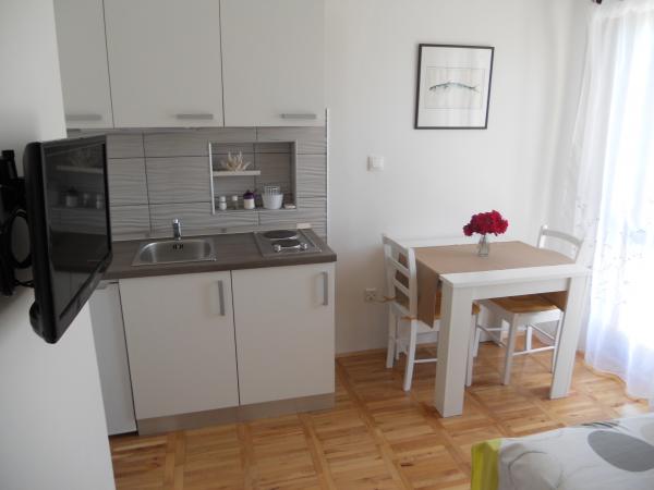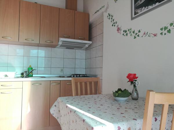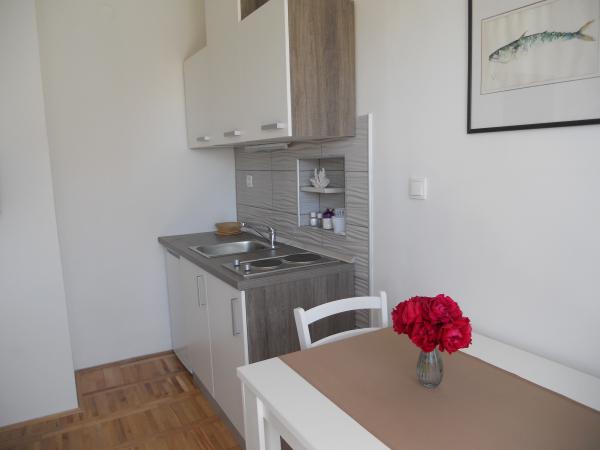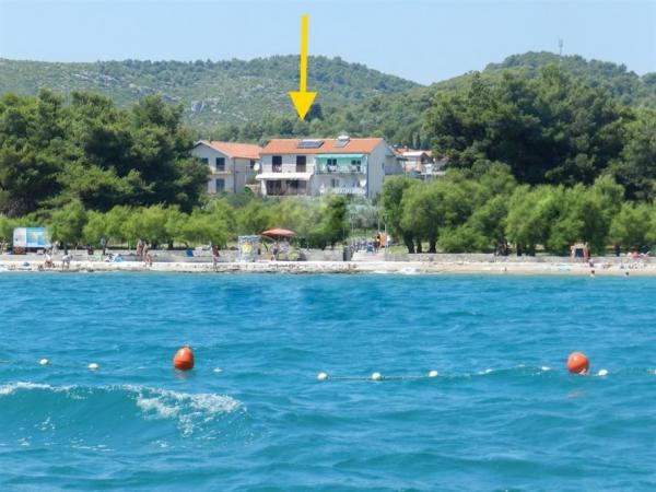 Casa este situată într-un cartier liniștit primul rând la mare și este format din 4 apartamente. Are o vedere frumoasă la mare, iar plaja cu scrumi și secțiuni din beton este ideală pentru copii. Plaja are o mulțime de facilități pentru a vă putea bucura de jet-ski, barci cu pedale, parc acvatic, tenis de masă, trambulină și multe alte activități. Când doriți o pauză de la toate activitățile, de plajă și de înot, puteți merge la o vacanță în cafenelele și restaurantele din apropiere, unde vă puteți bucura de băuturi răcoritoare și de specialități dalmate.