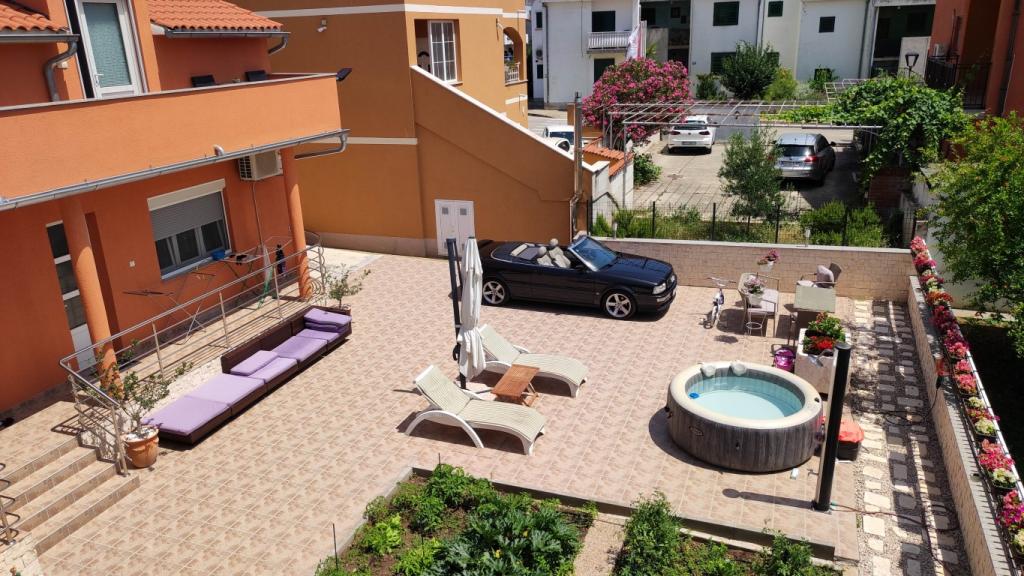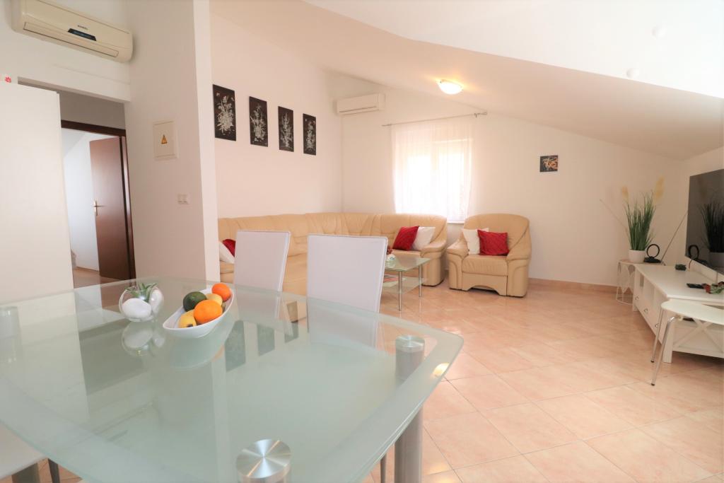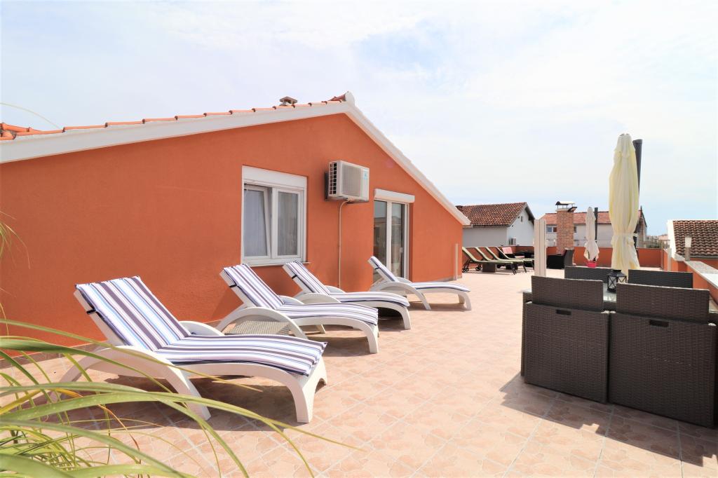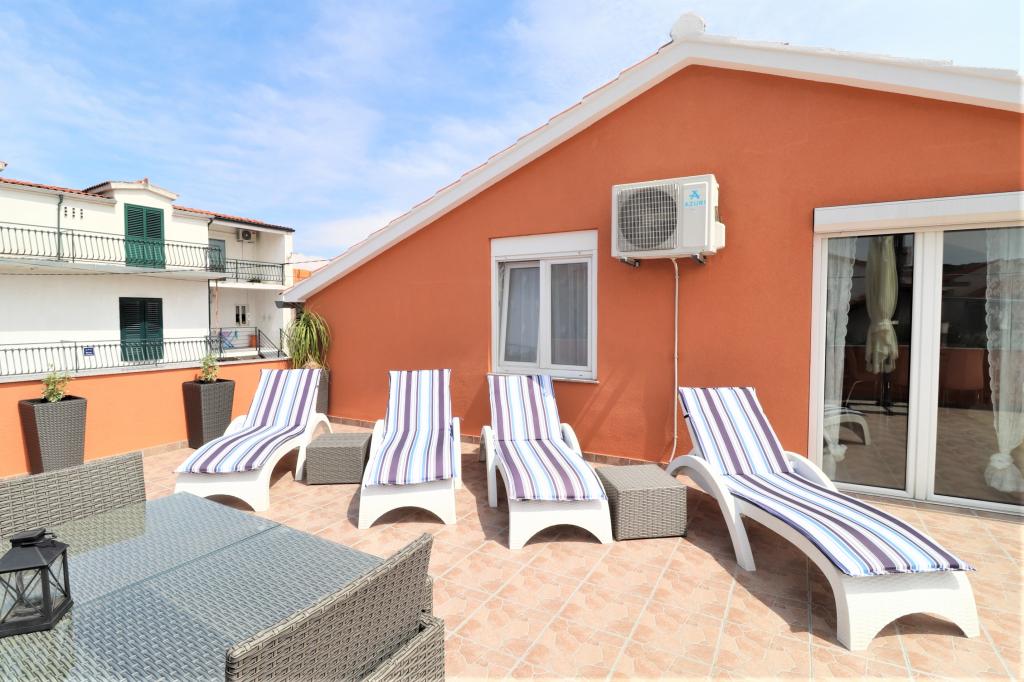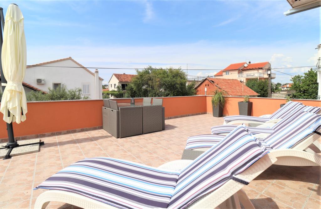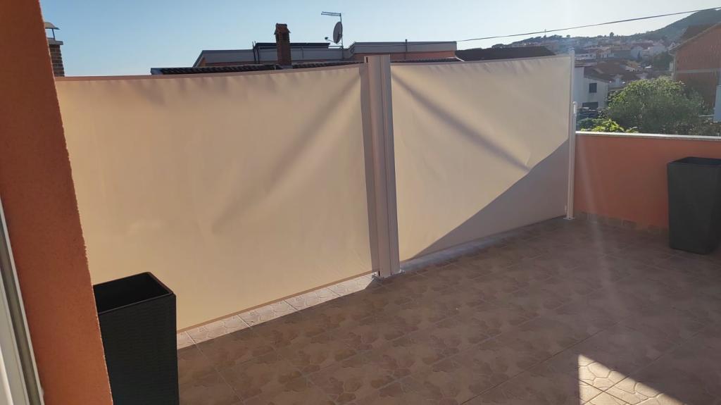 Apartamente complet echipate într-o zonă liniștită din Vodice, cu o terasă mare și curte. Apartamentele sunt situate la ultimul etaj al casei familiei. Terasa poate fi separata cu o copertina laterala daca este necesar. Există jacuzzi și grătar în curte. Animalele de companie sunt binevenite. Este asigurat un loc de parcare pentru doua masini. Plajele sunt la aproximativ 15 minute de mers pe jos. Taxa de sedere este inclusa in pret. Posibilitate de transport de la aeroporturile Zadar și Split.