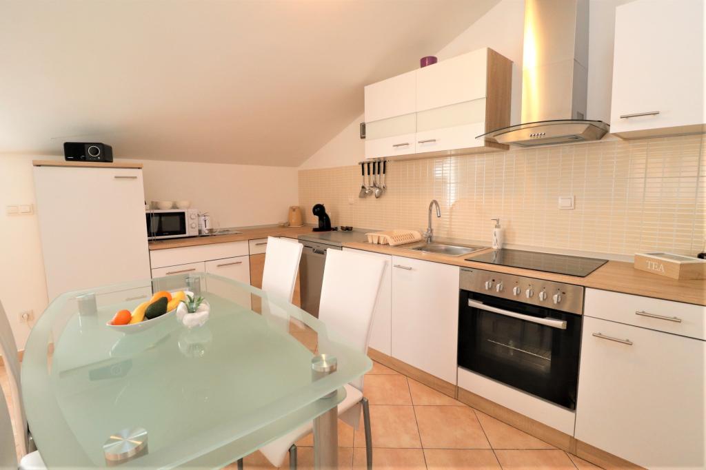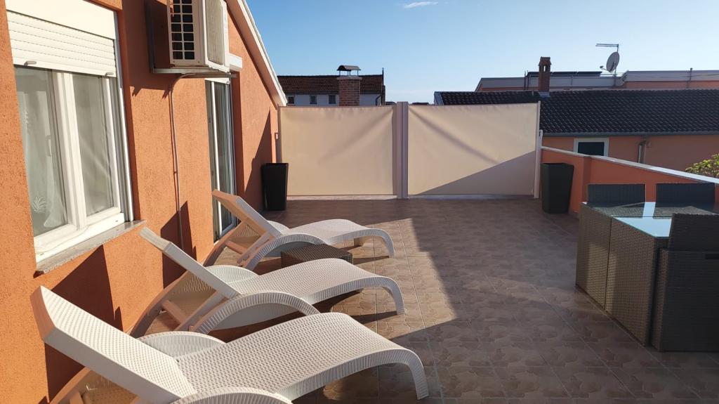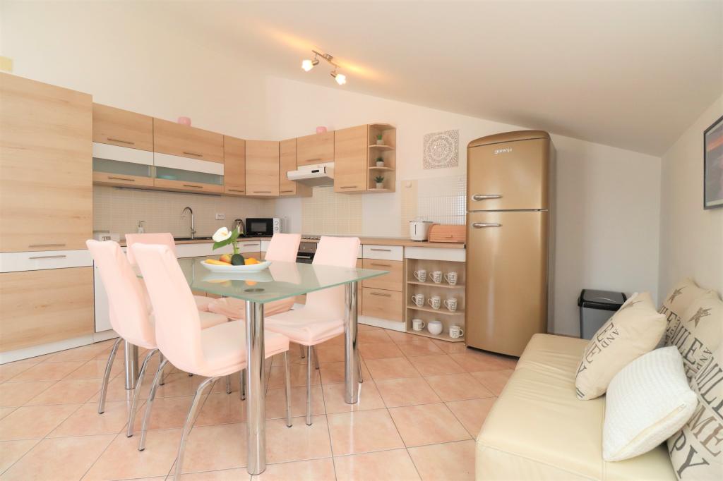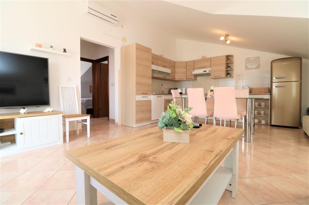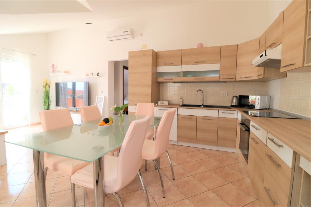 Apartamente complet echipate într-o zonă liniștită din Vodice, cu o terasă mare și curte. Apartamentele sunt situate la ultimul etaj al casei familiei. Terasa poate fi separata cu o copertina laterala daca este necesar. Există jacuzzi și grătar în curte. Animalele de companie sunt binevenite. Este asigurat un loc de parcare pentru doua masini. Plajele sunt la aproximativ 15 minute de mers pe jos. Taxa de sedere este inclusa in pret. Posibilitate de transport de la aeroporturile Zadar și Split.