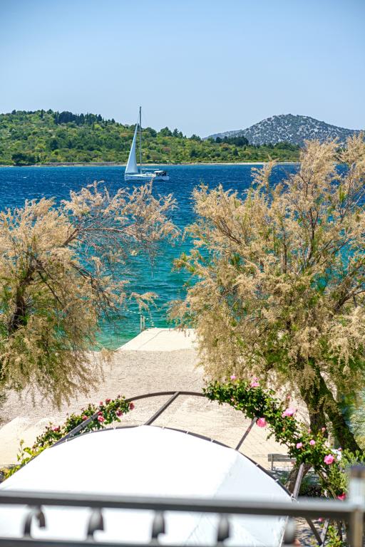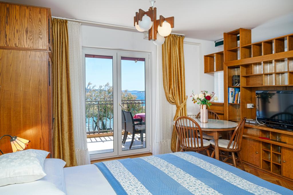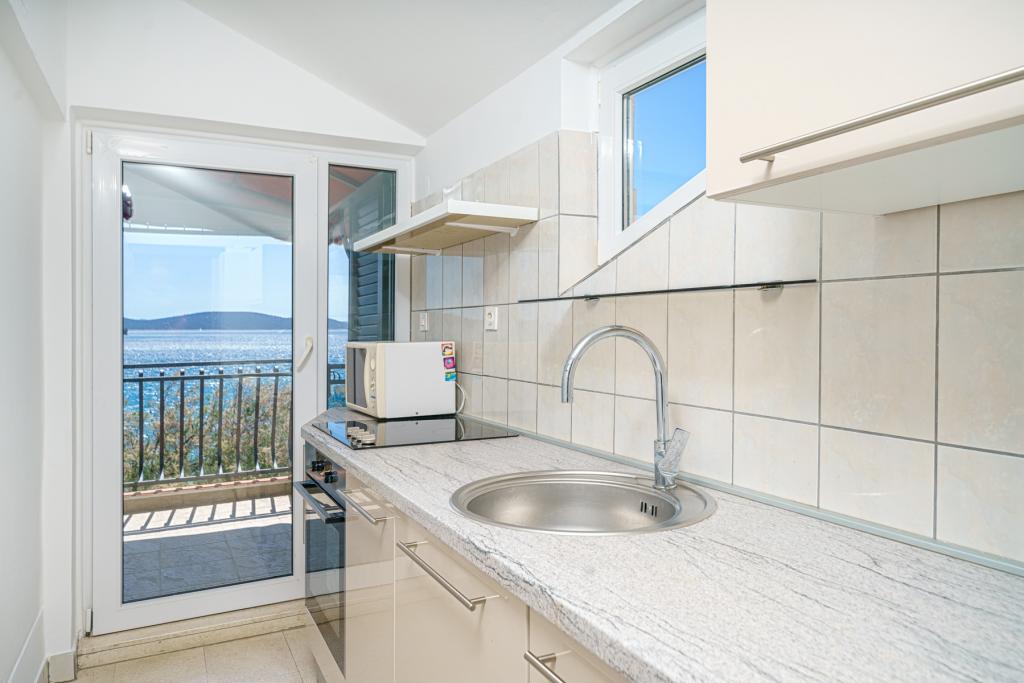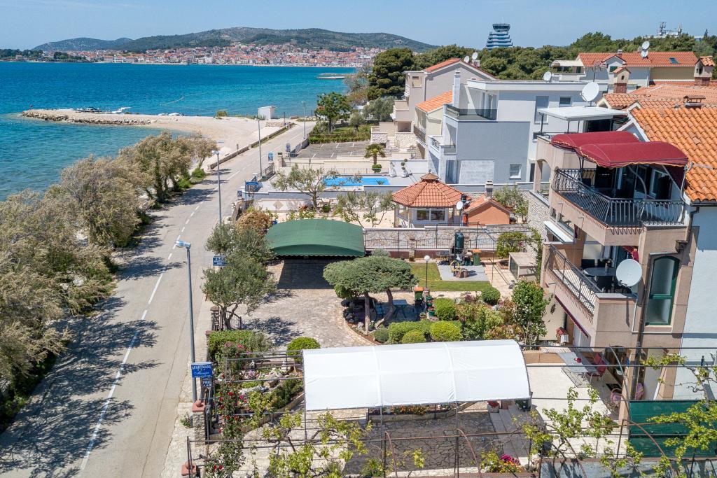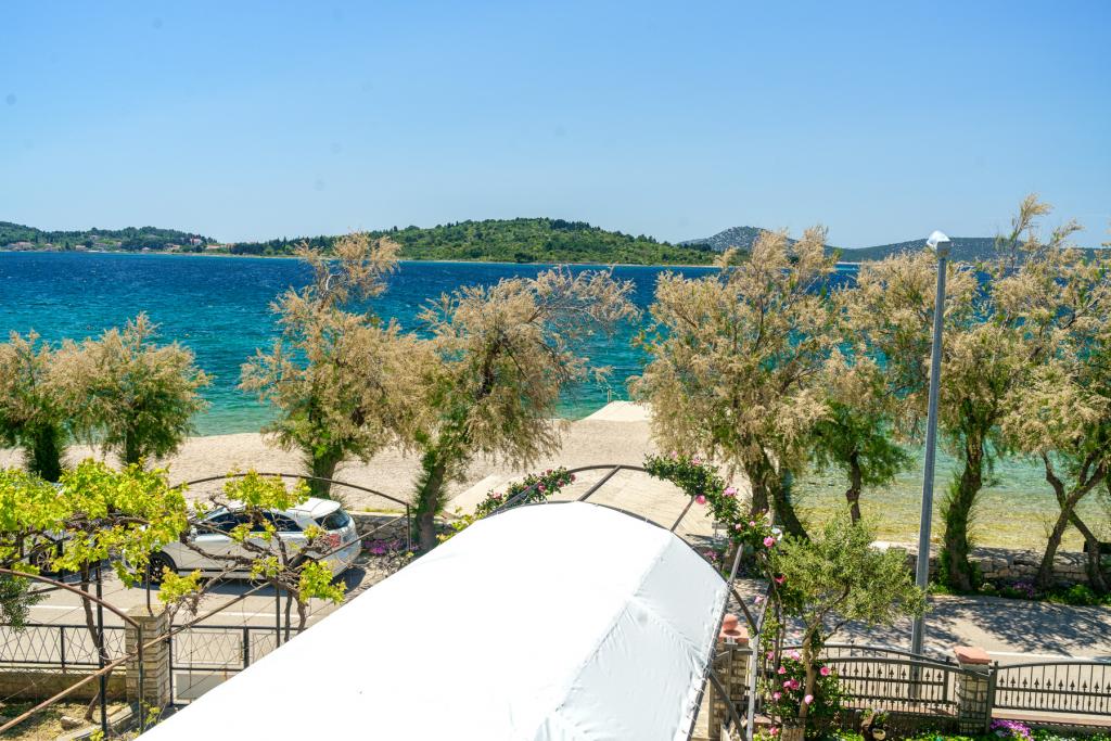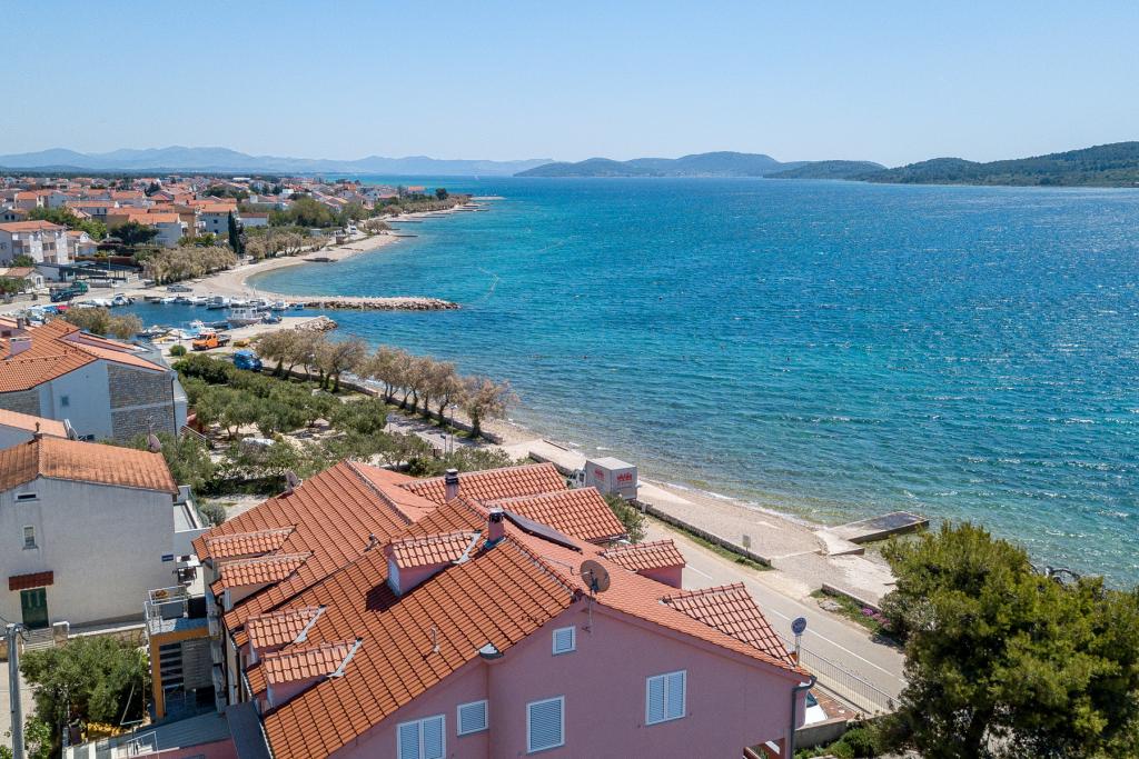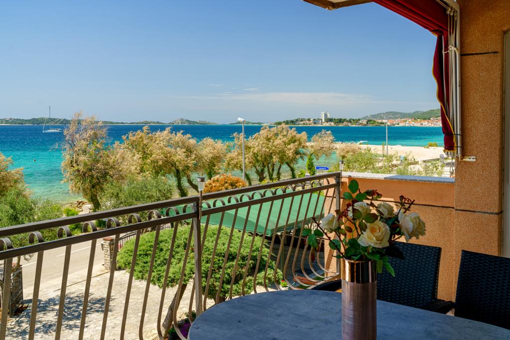 Vodice Apartments Marija Vulić la numai 6 metri de mare, primul rând la mare. Închirierea unui apartament în Vodice poate fi pentru mai multe persoane. O plaja mare chiar in fata apartamentului, totul este ordonat, marea curata. Locație extrem de atractivă cu nenumărate conținuturi pentru toate generațiile, tinere sau bătrâne. Aproape de magazine, centru, program catering, discoteca, petrecere in aer liber, cocktail pe plaja, muzica, pescuit. Parcare securizată, aer condiționat, Wi-Fi, televiziune prin satelit, bucătărie, baie, dormitor, living, o terasă foarte frumoasă și vedere la coasta Adriatică. In fata casei sunt doua acostare pentru barca. Alegeți unul dintre cele 3 apartamente oferite astăzi, pentru a vă asigura cea mai bună întâlnire. Te vei simți ca acasă la noi. Vă respectăm confidențialitatea și vă stăm mereu la dispoziție dacă aveți nevoie de vreun sfat.