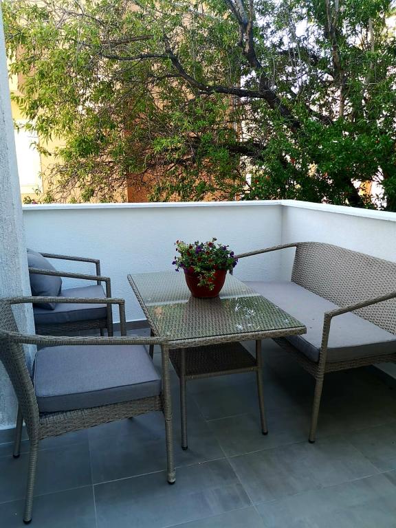 Apartamentele Marko din Vodice sunt situate într-o zonă liniștită, fără culcare, la numai 10 minute de mers pe jos de centrul orașului Vodice, strada nu este aglomerată și nu există zgomot, astfel că vacanța este în siguranță :) Oferim trei apartamente. Toate apartamentele sunt complet echipate astfel încât să aveți aer condiționat, TV, WIFI, bucătărie cu toate echipamentele, protecție contra țânțarilor și parcare. Fiecare apartament are o intrare separată, care este introdusă folosind un cod, astfel încât să nu aveți contact cu alți oaspeți. Există un gazon mare, cu grătar, unde puteți încerca să pregătiți un grătar, să coaceți sau pur și simplu să vă bucurați de umbră.