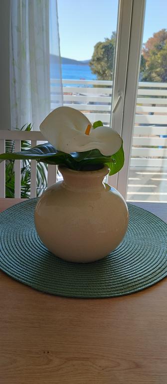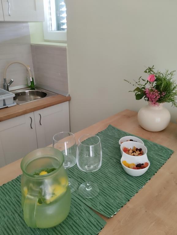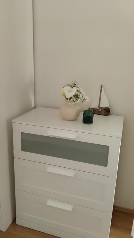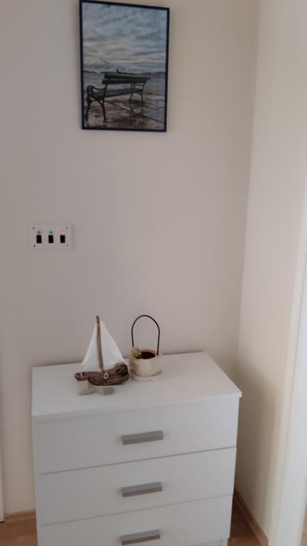 Două apartamente la etajul doi al unei case de familie chiar pe Blue Beach Apartamentul cu două camere a fost recent renovat, iar apartamentul cu o cameră tocmai a fost decorat anul trecut. Plaja este la aproximativ 70 de metri de casa, iar centrul orasului este la 600 m distanta. Pe plaja exista numeroase facilitati de catering pentru copii, precum si o plaja special amenajata pentru copii. Plaja din fata casei este nisipoasa, iar putin mai departe, la aproximativ 20 de metri, este pietrisa. Intrând în apartament. posibilă după ora 12:00 plecare până la ora 10:00.