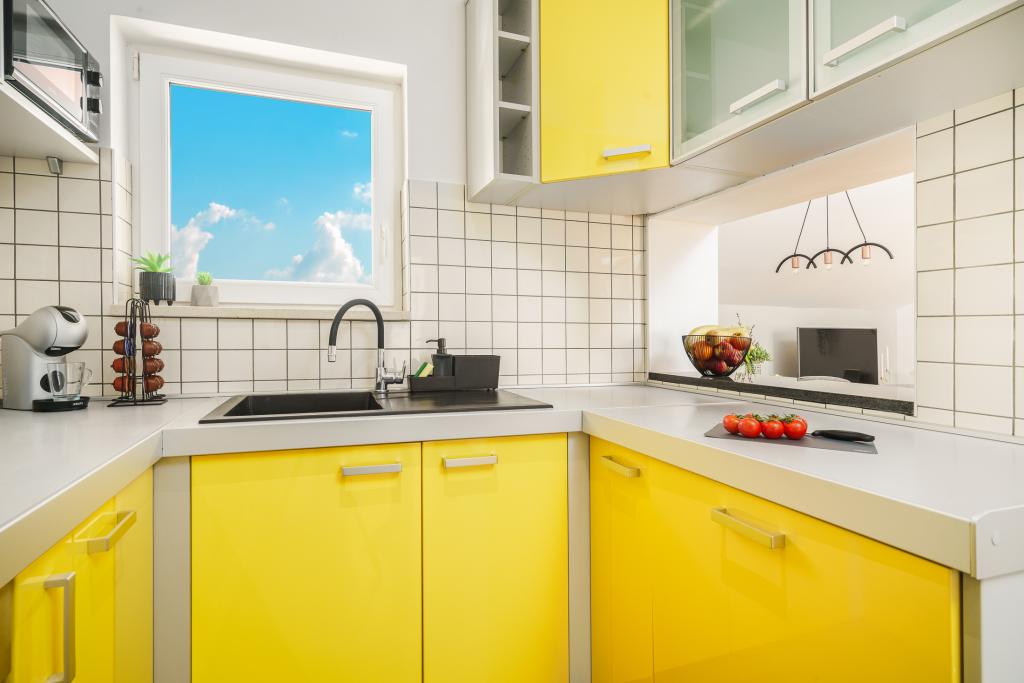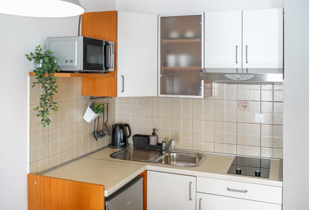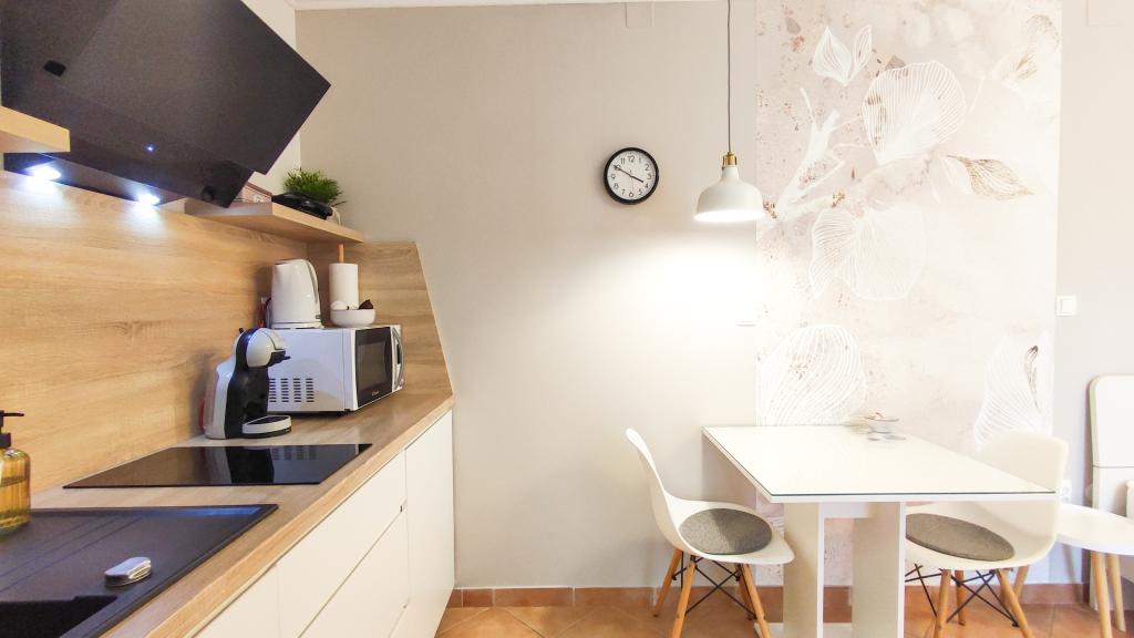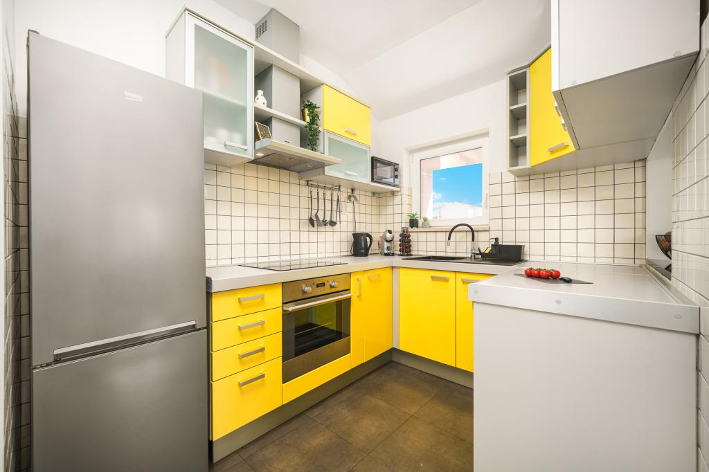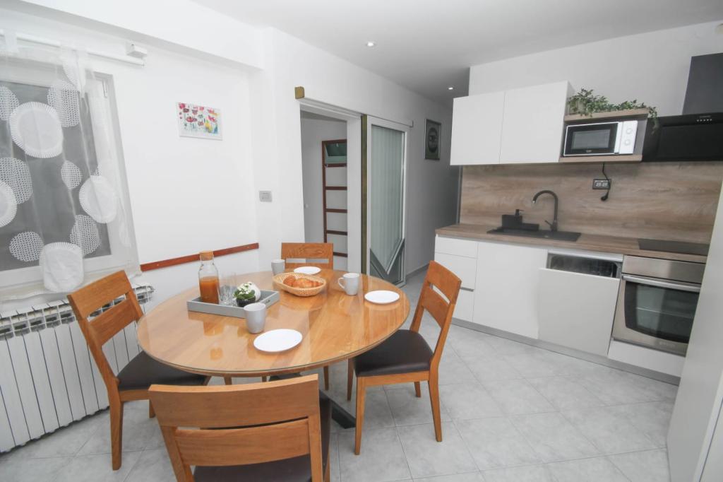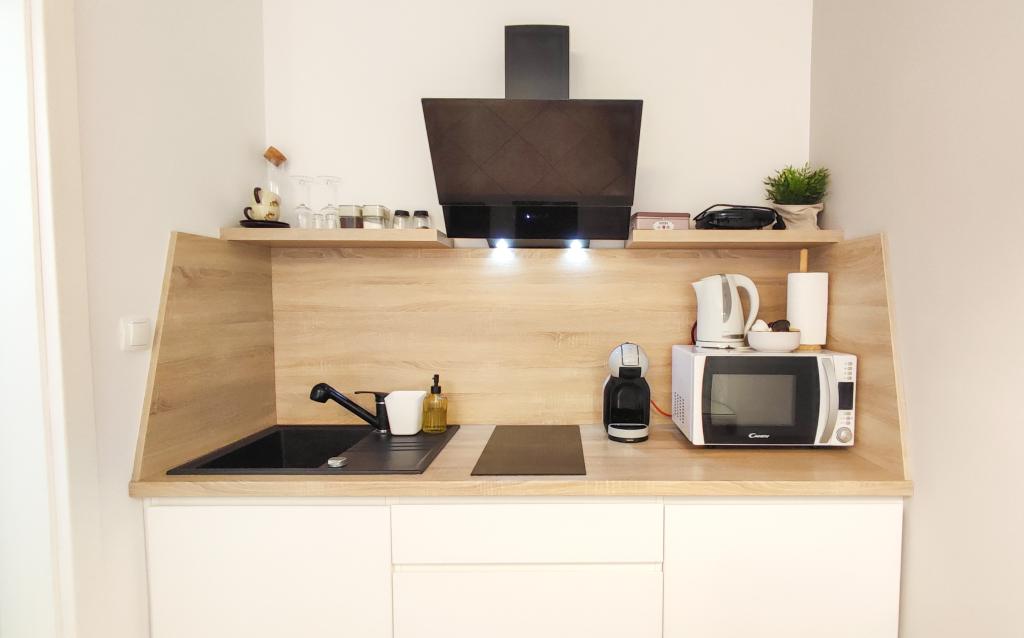 Pe lângă facilitățile de bază, cum ar fi condimente, ulei, oțet și detergent, apartamentul include și echipamente suplimentare pentru confortul dumneavoastră. Aparatul de cafea vine cu capsule, iar pentru curățarea hainelor și a vaselor sunt furnizate tablete și capsule, pe care le puteți găsi împreună cu aparatele corespunzătoare. De asemenea, sunt disponibile un fier de călcat și o masă de călcat, care permit călcarea ușoară ori de câte ori este nevoie. De asemenea, suntem aici pentru a vă ajuta cu orice întrebări sau sfaturi, fie că este vorba de recomandări pentru excursii, închirieri de bărci, biciclete sau orice alte servicii. Nu ezitați să ne contactați pentru orice lucru care vă poate îmbunătăți șederea!