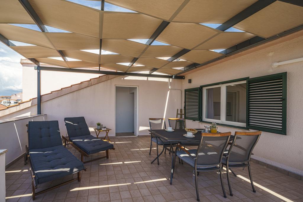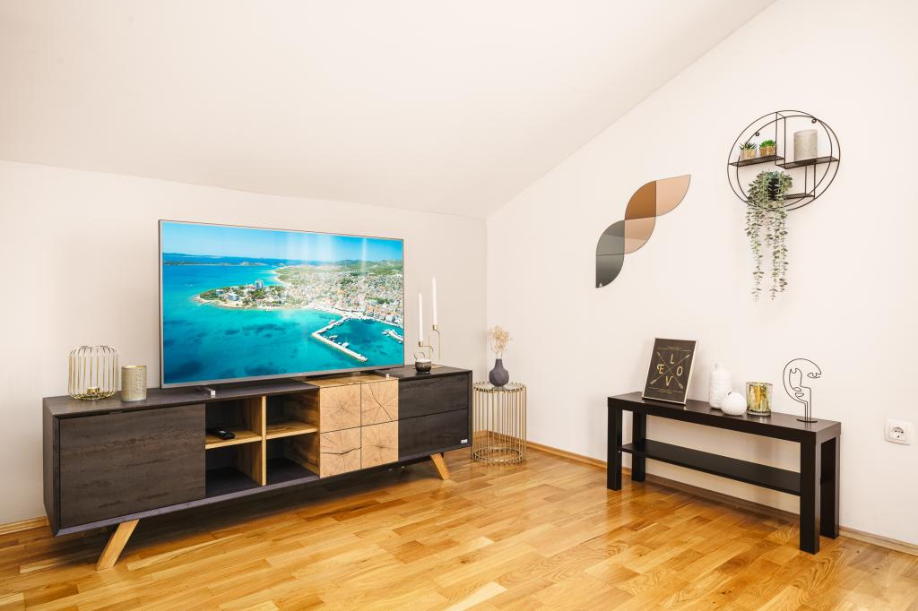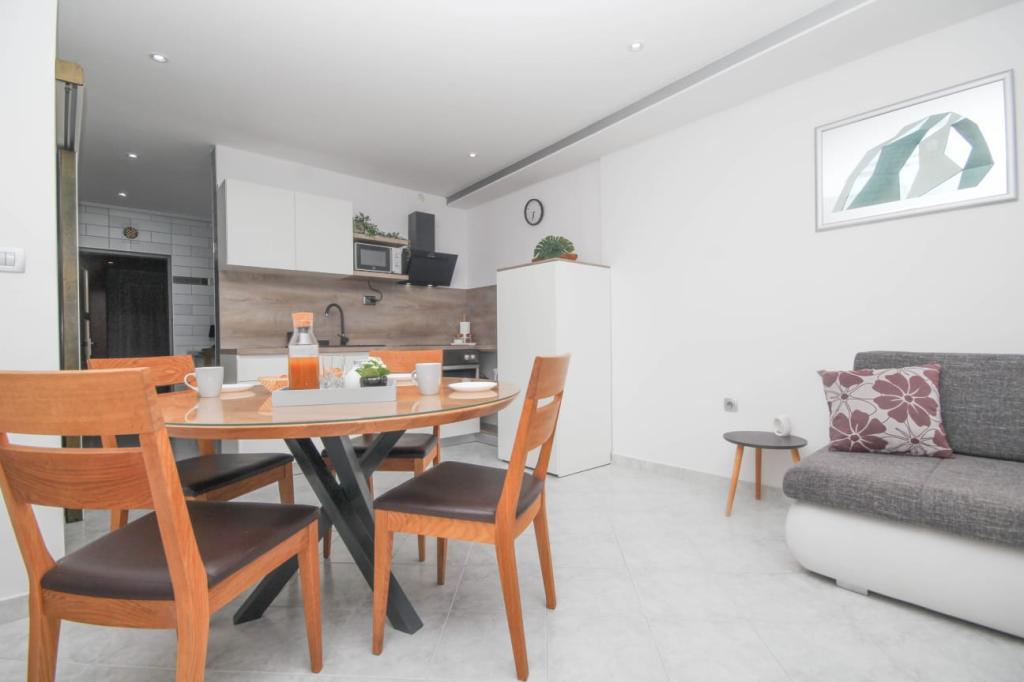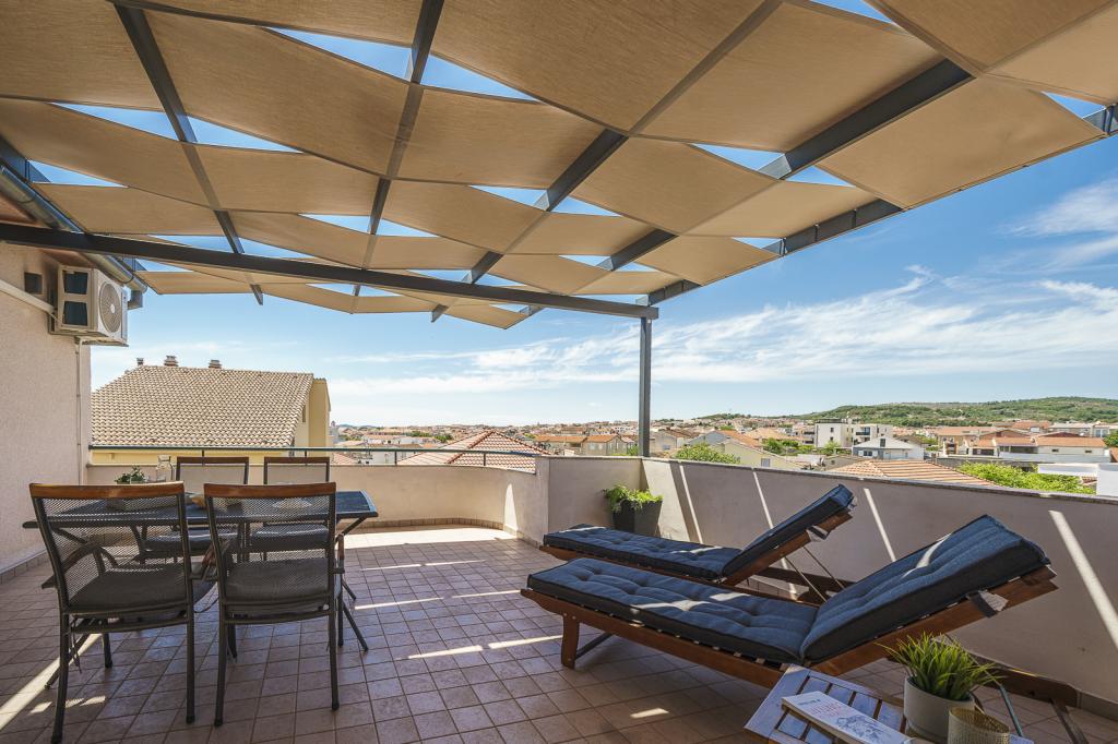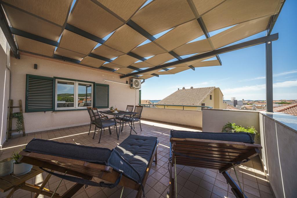 Bine ați venit la Apartamentele Familiale Petrov! Oferim cazare confortabilă în 5 apartamente modern echipate, perfecte pentru grupuri mai mici sau familii mai mari care doresc să se bucure de o vacanță relaxantă. Acestea sunt situate în două case de familie cu intrări proprii, dispuse la parter și primul etaj. Fiecare apartament are propria intrare separată și terasă privată acoperită. Locația noastră este ideală - suntem situați într-o zonă liniștită, departe de zgomot și trafic, dar la doar câteva minute de mers pe jos de centrul orașului Vodice și de plaja cu pietriș Mala Vruje. În imediata vecinătate există supermarketuri, cafenele, o brutărie, o farmacie, astfel încât toate facilitățile necesare sunt la îndemână. Vă invităm să vă petreceți vacanța într-un mediu liniștit, nu departe de plajă și de centrul orașului!