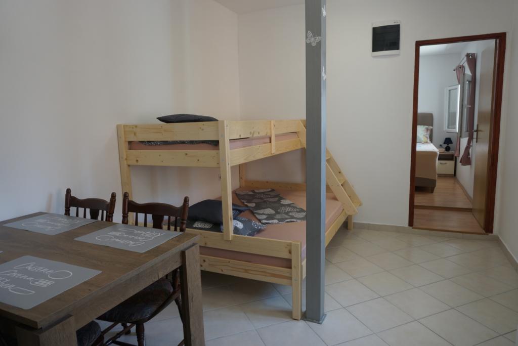 Bine ați venit la Apartments Skledar! Descoperiți adevăratul confort în apartamentele noastre recent renovate, situate în inima orașului Vodice. Adresa noastră, Ulica blata 10, este situată la doar 200 de metri de încântătoarea Plajă Albastră, care este alegerea perfectă pentru iubitorii de plajă. În plus, ne aflăm la doar 350 de metri de centrul orașului, asigurând acces facil la atmosfera urbană vibrantă. Tot ce aveți nevoie este la îndemână, inclusiv un magazin alimentar la doar 50 de metri distanță. Caracteristici: Apartamentele noastre recent renovate au un decor modern și conțin facilități adaptate confortului și caracterului practic al dumneavoastră. Fiecare dintre cele 3 apartamente ale noastre oferă o terasă privată, oferindu-vă un paradis personal pentru a vă relaxa și a vă bucura de împrejurimile liniștite. Vedere la mare: Deși dormitoarele noastre nu au vedere la mare, unul dintre apartamentele noastre oferă o vedere limitată la mare, pe care o puteți admira din bucătărie și terasă. Locație excelentă: Apartamentele noastre sunt situate pe o stradă liniștită și oferă un refugiu pașnic după o zi petrecută explorând.