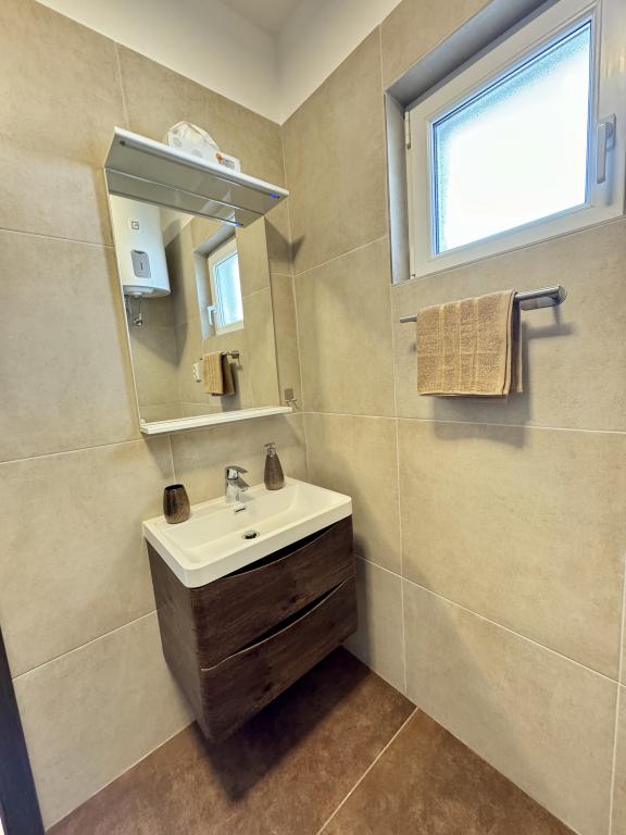 Relaxați-vă în această unitate de cazare confortabilă și frumos decorată. Apartamentele Sunce ID: 78911 și Mjesec ID: 81423 sunt situate la primul etaj și ambele au 42 m2. Acestea sunt compuse dintr-un dormitor, living cu zonă de luat masa, bucătărie, baie și terasă. Apartamentul are aer condiționat pentru zilele călduroase și încălzire prin pardoseală (Sunce) pentru zilele reci. Wifi-ul și aerul condiționat sunt incluse în preț. Oaspeții au la dispoziție lenjerie de pat și prosoape. Parcarea este gratuită și în interiorul clădirii. Apartamentele sunt situate într-o zonă liniștită a orașului Vodice. Cea mai apropiată plajă este la 750 m distanță. Centrul este la 990 m distanță. Suntem situați în apropierea „Centrului Medical Vodice”, a centrului sportiv recent deschis „Racice” și a celui mai mare skate park din Croația.
