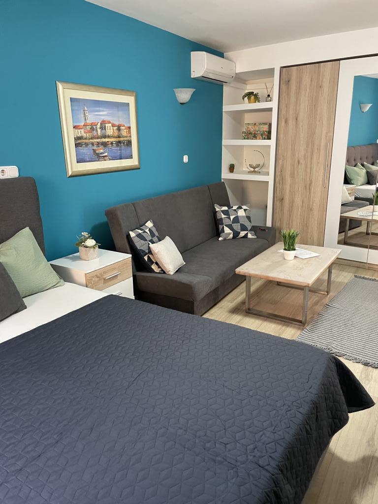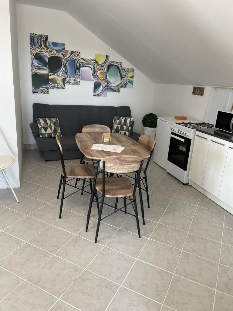 Apartamente complet utilate și modern echipate în centrul orașului Vodice, situate la aproximativ 150 de metri de mare. Facilitatea este situată la 1 minut de mers pe jos de centru și la 5 minute de mers pe jos de plajă... Oferim un apartament cu vedere la mare pentru 4+1 persoane, cu două paturi duble în 2 camere cu un pat suplimentar pentru a 5-a persoană și un balcon cu o vedere frumoasă la mare. 2 Apartamente 2+1 persoane cu un pat dublu și un pat suplimentar, iar unul dintre aceste două apartamente are balcon. Ofertă specială pentru 6 și 9 luni: plătiți pentru 5 nopți și primiți o noapte gratuită!! În plus, aveți parcare gratuită. Bine ați venit în frumoasa Vodice.