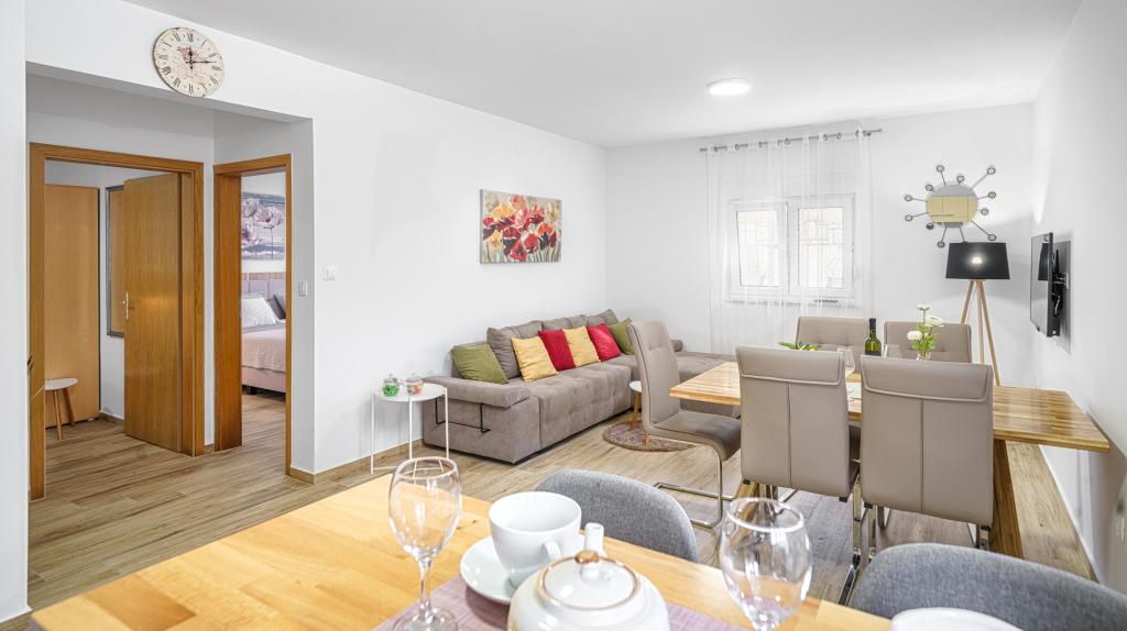 Apartamentele Vesna sunt mobilate confortabil și oferă o ședere de calitate oaspeților noștri. Apartamentele sunt dotate cu aer condiționat, există un grătar în aer liber pe care oaspeții îl pot folosi. Cu amabilitatea și serviciile noastre de calitate, confirmăm sosirea oaspeților care au fost deja la noi și a oaspeților noi. Facilitatea se află la cinci minute de mers pe jos, la 500 m de plajă și, de asemenea, de centrul orașului. Avem o parcare comună în curte. Vodice este un loc potrivit pentru toate categoriile de turiști, oferind înot, scufundări, divertisment, restaurante, plimbări, vizite la parcuri naționale, plimbări cu barca, vizite la orașul Šibenik, în imediata vecinătate existând orașe cunoscute pentru arhitectura lor veche de secole: Zadar, Trogir, Split.