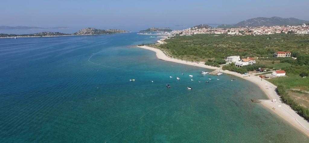 „Villa Lovorka” oferă cazare în primul rând la mare, cu o vedere frumoasă, deschisă asupra insulelor, plajei și împrejurimilor. La marginea orașului Vodice, într-o zonă liniștită, pentru o vacanță relaxantă. Apartamentele noastre au eticheta „Like HOME”, o cazare de familie de calitate club. Apartamentele noastre confortabile au 1 sau 2 dormitoare, fiecare cu o bucătărie echipată standard, living cu zonă de luat masa, hol, duș/toaletă și balcoane mari, majoritatea cu vedere la mare. Dispunem de o parcare mare împrejmuită pentru mașini și remorci pentru bărci. Dacă doriți recreere, divertisment sau plăceri gourmet, faimoasa Plajă Albastră este în apropiere, plaja Vićevica, în fața casei, plaja Bristak, precum și noua promenadă care leagă Vodice de Tribunj. Locuim la parter tot timpul anului și suntem bucuroși să fim la dispoziția oaspeților noștri. Caracteristici de bază: - primul rând la mare - balcoane spațioase cu o vedere frumoasă la mare - încălzire centrală și aer condiționat pentru un sejur confortabil - TV prin satelit, Wi-Fi - creăm conținut suplimentar în funcție de interesele oaspeților