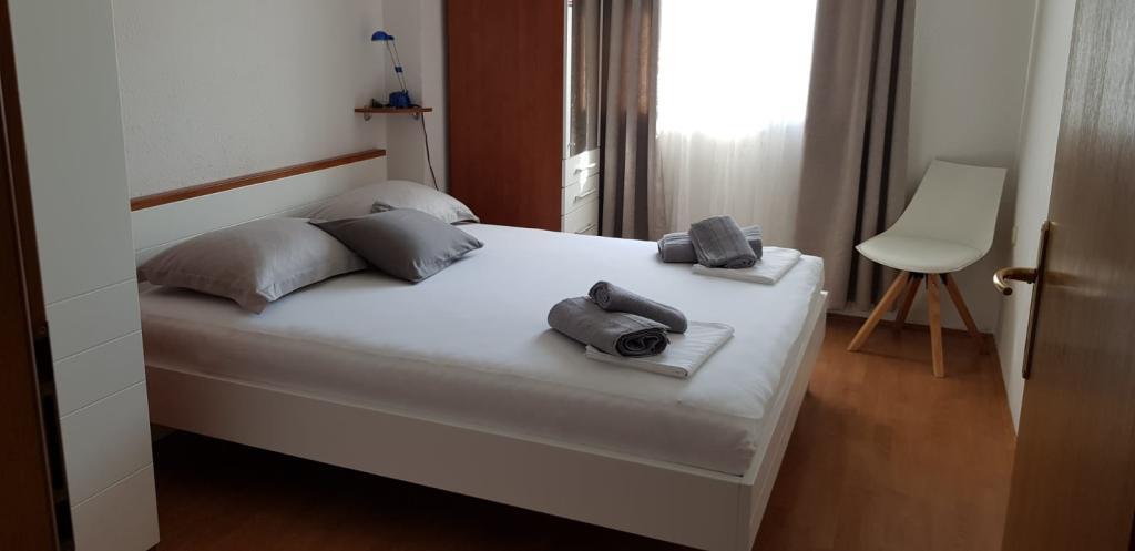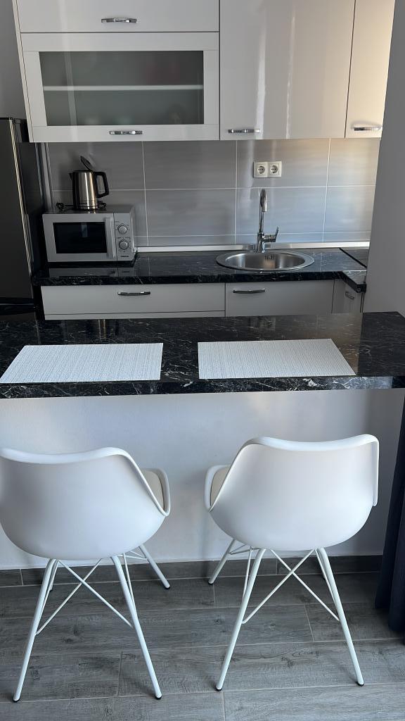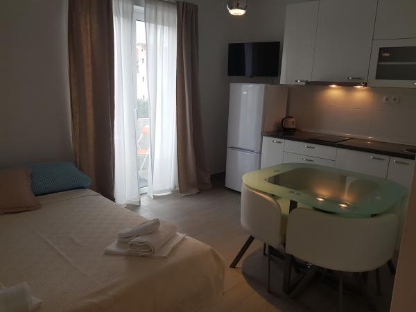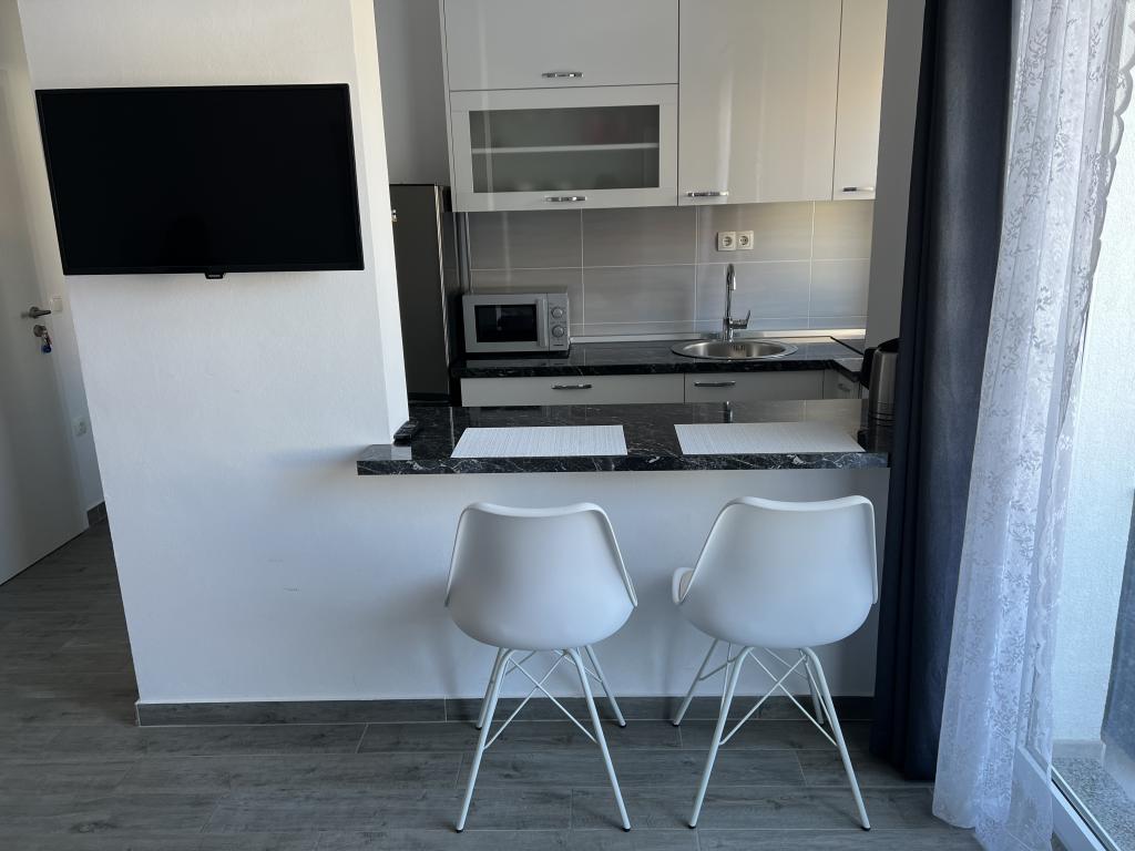 Apartamentul este perfect pentru o familie de 2+1 persoane. Există un pat mare în dormitor și o canapea în zona chicinetei. Totul este conform descrierii. Bucătăria și baia sunt dotate ca acasă. Proprietara este foarte prietenoasă. Ea și fiica ei au grijă de apartamente, asigurându-se că sunt curate și perfect pregătite pentru noii chiriași. Apartamentul nostru avea un balcon mic cu scaune. Perfect pentru micul dejun și cafea. Cartierul este liniștit și este aproape de plajă și de o brutărie cu chifle delicioase și pizza la felie. Îl recomand cu căldură, mai ales că este a doua oară când stau aici.