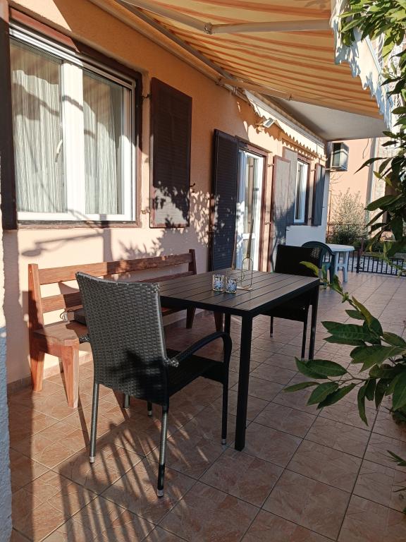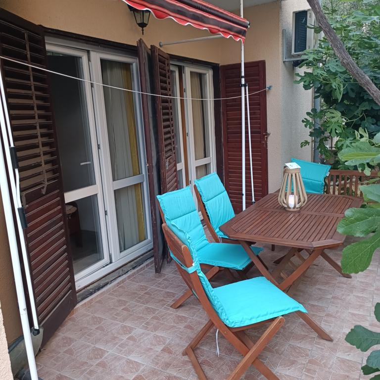 Apartamentele sunt situate într-o zonă liniștită a orașului. Fiecare apartament are o terasă mare la parter și multă protecție împotriva soarelui, datorită vegetației și copertinei de protecție cu care puteți regla umbra sau doza de soare. Accesul pentru scaune cu rotile este posibil, fiecare apartament are o terasă de 65 (m2) + 15 (m2), internet nelimitat, TV prin satelit, aer condiționat, grătar în aer liber, încălzire centrală pe timp de iarnă. către/ Tomija/ mini market.