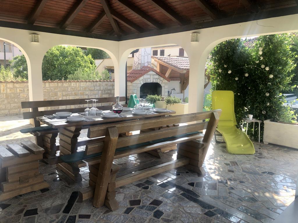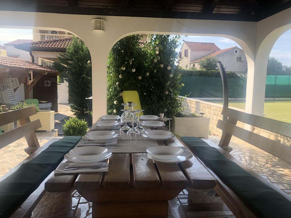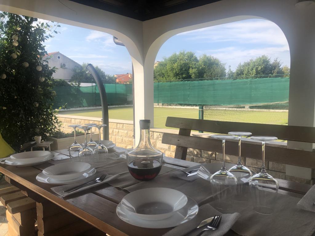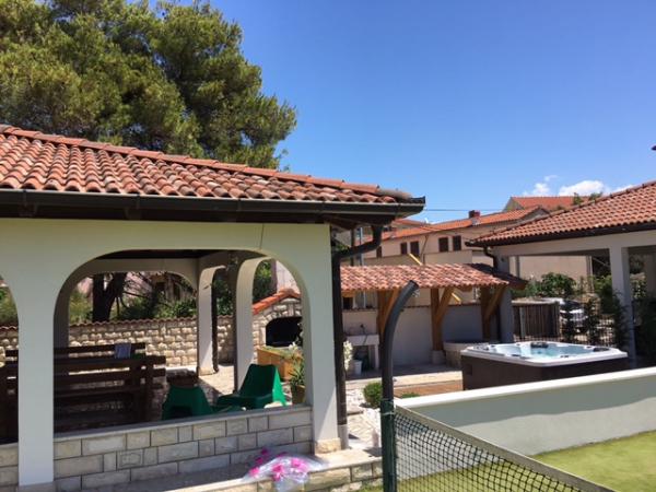 Toată casa doar pentru tine! Paradis pentru familii! Bun venit la Villa Melosa! Casă de vacanță confortabilă în Vodice, cu un teren de tenis privat. Casa poate găzdui până la 10 persoane. Dispune de 5 dormitoare, 3 bai, o bucatarie, un living si o terasa spatioasa unde va puteti relaxa si savurati gratare si un jacuzzi in aer liber pentru 5 persoane. Casa este dotata cu aer conditionat. Proprietatea dispune de 3 locuri de parcare, doua cu garaj acoperit. Întreaga proprietate este împrejmuită, astfel încât să fii sigur că copiii nu vor ieși la drum și se pot juca fără griji în curtea spațioasă.