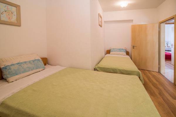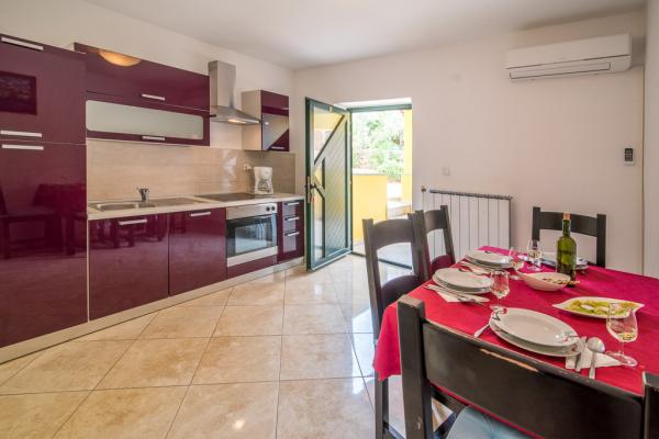 Casa de familie este situat într-o zonă liniștită din Vrbnik. În plus față de gazdă a casei este situata 5 apartamente, un total de 16 de persoane. Apartamentele Sun sunt situat la 2 minute de plaja. De pe terasa este o priveliște minunată a canalului Velebit și vechi Vrbnik Casa are o grădină mare. Turistii nostri bea vin gratuit (Žlahtina). Sejur Ideal înainte și după sezonul. Vă veți bucura de pace, soare, mare și Žlahtina. Vrbnik In apropiere se afla o multime de trasee pentru biciclete și trasee de mers pe jos (cu vii in salbaticie). Avem un centru de scufundări și o școală de scufundări. Fundul mării în zona de Vrbnik este minunat.