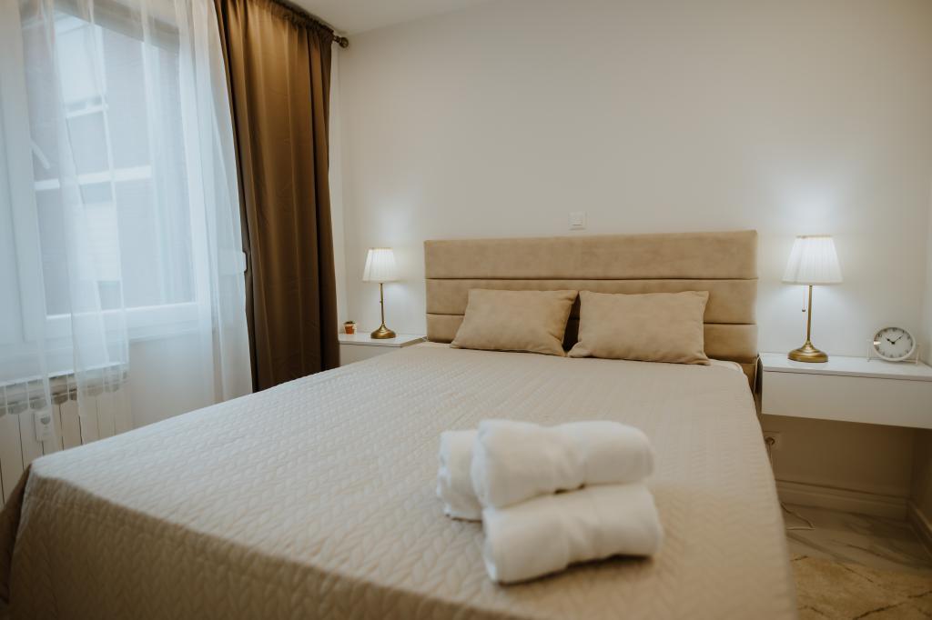 Vă dorim un sincer bun venit în orașul Vukovar și în apartamentul nostru luxos, cu speranța că veți părăsi Vukovar cu impresii de neuitat! Apartamentul are o suprafață de 59 m2, este clasificat cu 4 stele și dotat cu mobilier la comandă, un televizor mare cu ecran plat și Wi-Fi gratuit, aer condiționat, cu o logie mare care se poate închide cu jaluzelă cu o telecomandă dacă este necesar și toate electrocasnicele (mașină de spălat, mașină de spălat, uscător, mașină de spălat vase, frigider cu congelator, cuptor, plită încorporată). Apartamentul oferă cazare confortabilă pentru maximum 4 persoane cu confort și dotări superbe, iar oaspeții apartamentului au la dispoziție un loc de parcare gratuit. Din dormitor se vede râul Vuka, simbolul Vukovarului - Turnul de apă și turnurile clopotnițelor bisericilor din Vukovar. In apropierea cladirii se afla numeroase facilitati sportive, o promenada de-a lungul raului Vuka care duce la confluenta Vuka si Dunare, se afla la 550 m de centrul orasului si in imediata apropiere a tuturor obiectivelor si institutiilor orasului. . Ședere plăcută!