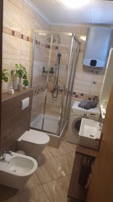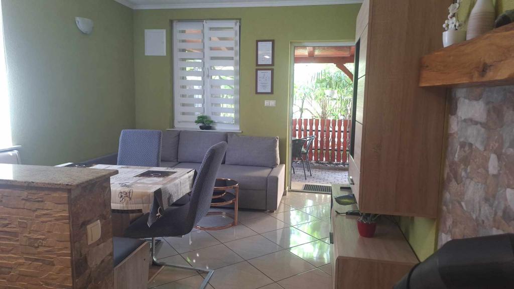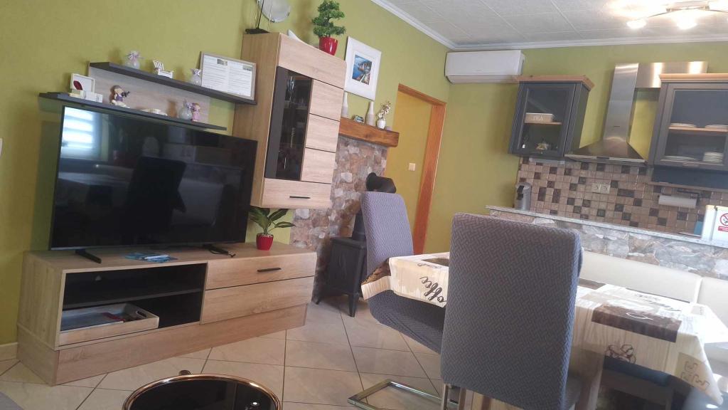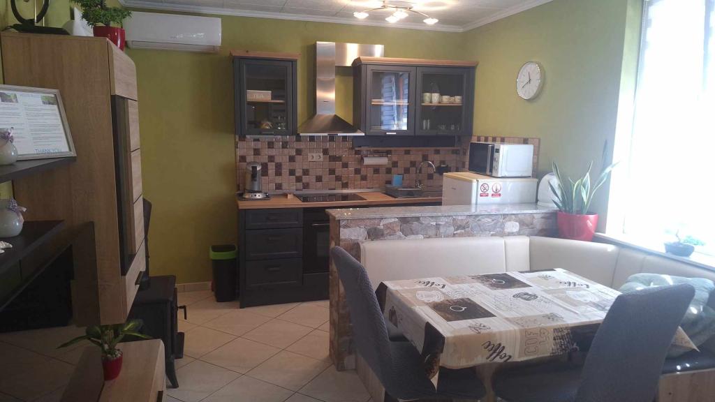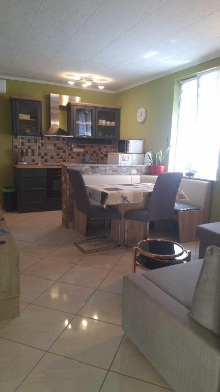 Apartamentul are de la aparate, vase, săpun, praf de spălat vase, prosoape, aer condiționat ... care ar trebui să aibă mai mult de atât (mașină de spălat), dimensiunea este întunecată, terasa de sub viță de vie este minunată pentru a sta și a vă bucura în seară. Totul este nou și superb curat. Gazdele sunt deschise și vesele, întotdeauna acolo dacă aveți nevoie de ele, dar pe de altă parte sunt vizibile și nu încalcă intimitatea oaspeților. Am fost întâmpinați de băuturi reci la frigider. Plajele sunt la 5 sau 10 minute de mers pe jos. Loc minunat pentru o vacanță mai ușoară și pentru fiecare recomandare!