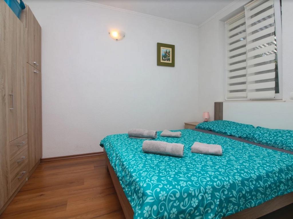 Apartament recent renovat într-un sat liniștit Zablace lângă Šibenik. Complexul este situat la 300 de metri de mare și de centru. În centru există restaurante, cafenele și magazine. Bakeria este la 1 minut de mers pe jos. Stația de autobuz a drumului Peko al apartamentului, autobuzul local se desfășoară în fiecare oră în centrul orașului Šibenik. Pe o rază de 20 de kilometri veți găsi numeroase atracții precum: NP Krka, Orașul Vechi, Cetatea, Promenade, Trasee de biciclete și stațiunea Solaris Tourist Resort. Apartament (1) este compus din living cu bucătărie și sufragerie, baie și dormitor. În camera de zi există un pat suplimentar pentru două persoane (160x200). Exteriorul are o curte frumos amenajată sub umbra naturală a viilor și posibilitatea de a gratări. Apartament (2) conține tot și apartamentul (1).