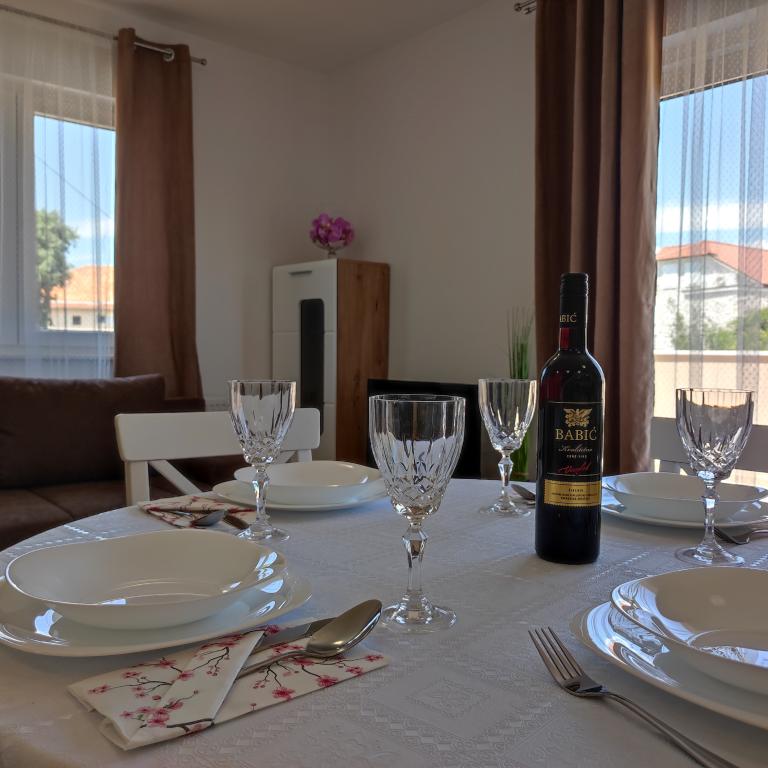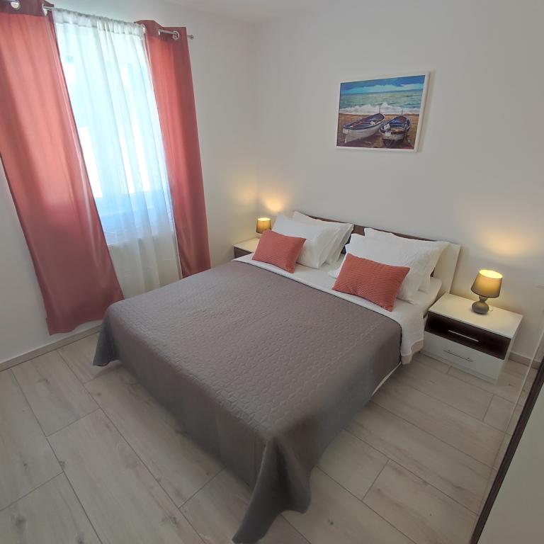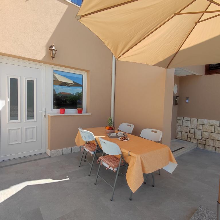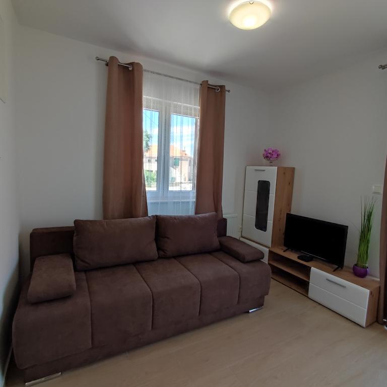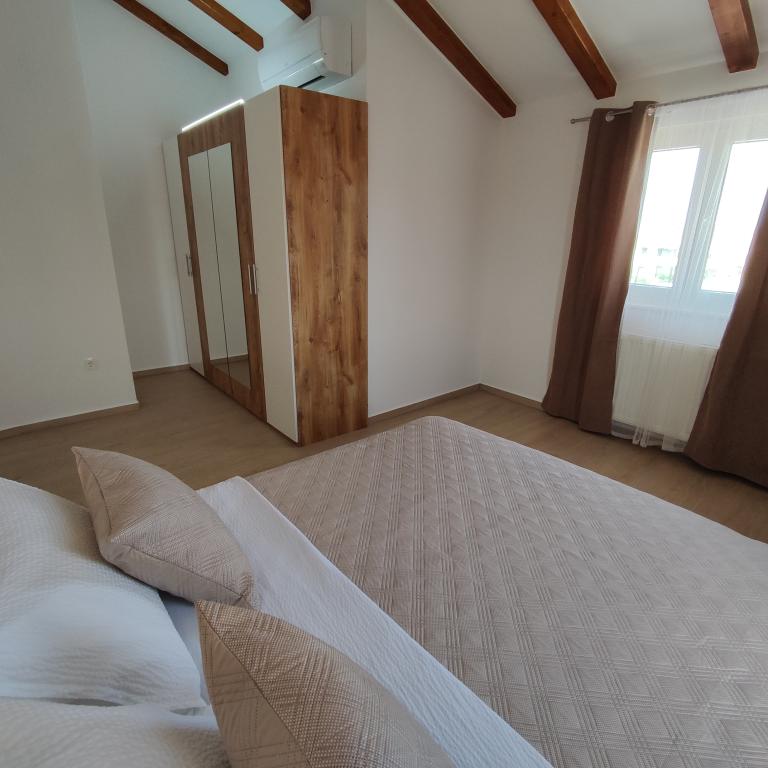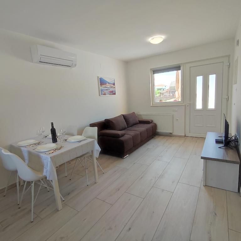 Cazare excelentă, apartament impecabil ordonat, decorat și mobilat pentru o vacanță relaxantă. O terasă spațioasă pentru o socializare plăcută, o intrare separată în apartament și chiar liniște... Am fost în foarte multe apartamente diferite, dar acesta este cel mai bun! Proprietara Marina este foarte plăcută, amabilă și discretă, suntem recunoscători pentru micile semne de atenție din timpul șederii noastre. Există un loc de parcare la umbra unui copac mare koštela. Practic, ideal pentru a merge la inot, la oras, magazine, restaurante. Opțiune de a veni din nou!