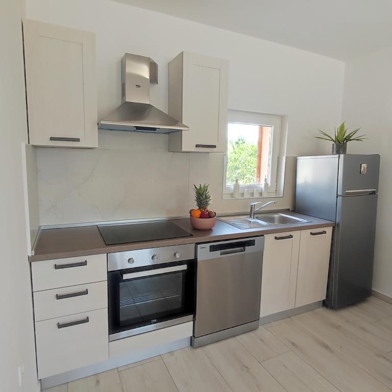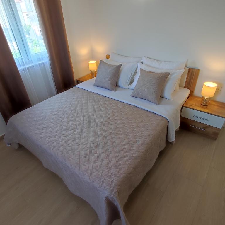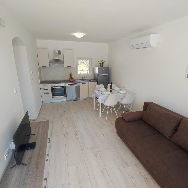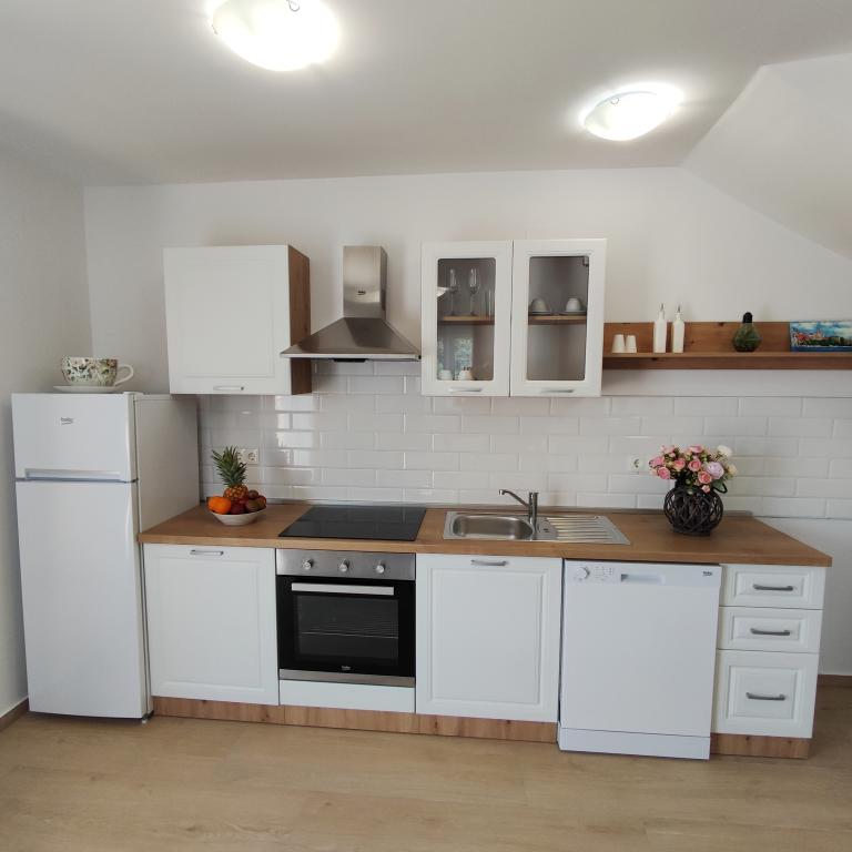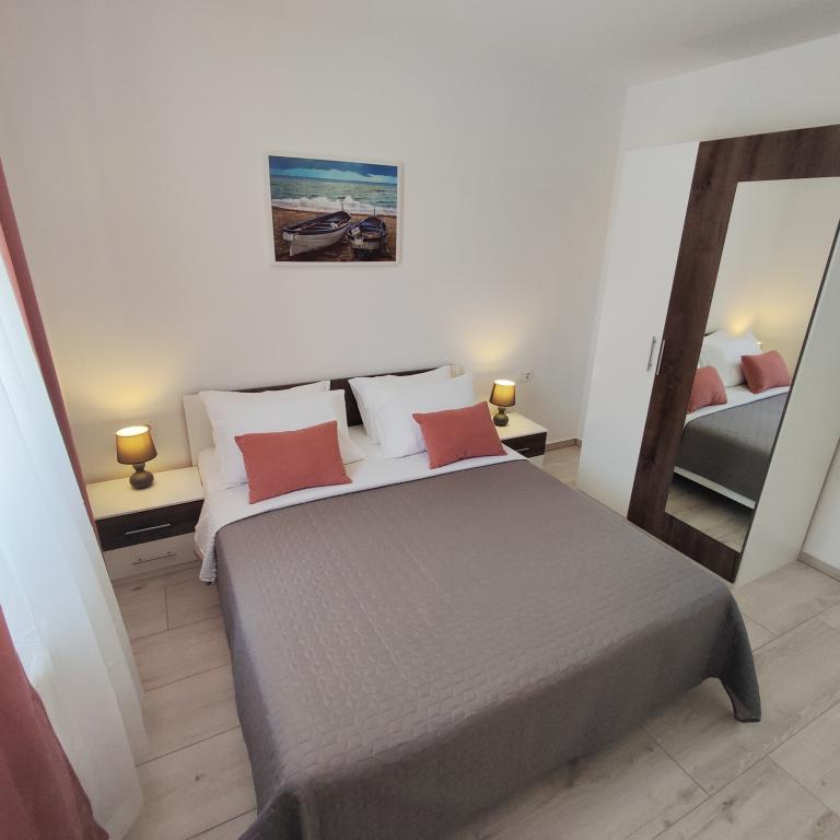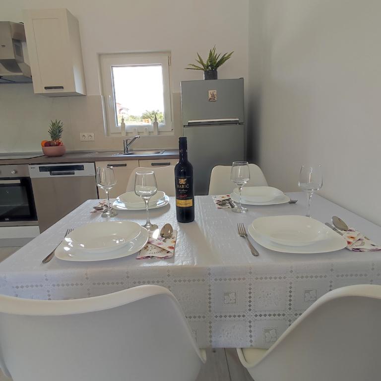 Cazare excelentă, apartament impecabil ordonat, decorat și mobilat pentru o vacanță relaxantă. O terasă spațioasă pentru o socializare plăcută, o intrare separată în apartament și chiar liniște... Am fost în foarte multe apartamente diferite, dar acesta este cel mai bun! Proprietara Marina este foarte plăcută, amabilă și discretă, suntem recunoscători pentru micile semne de atenție din timpul șederii noastre. Există un loc de parcare la umbra unui copac mare koštela. Practic, ideal pentru a merge la inot, la oras, magazine, restaurante. Opțiune de a veni din nou!