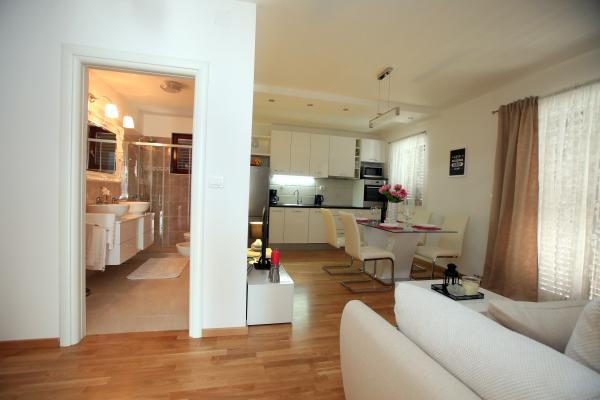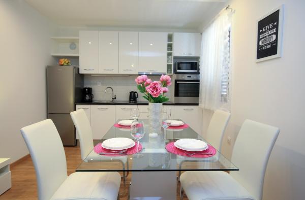 Taxa de rezidenta este inclusa in pret.Parcare gratuită, Internet Wi-Fi gratuit, Utilizarea aerului condiționat este taxată (cinci e pe noapte), Animalele de companie sunt permise exclusiv și numai în apartamentele nr.1, nr.2 și nr.3 și contra cost, Posibilitatea de a închiria conexiuni pentru barca, Posibilitatea de a închiria o ambarcațiune cu ghid pentru un tur al insulelor din jur, Posibilitatea de transport la stația de autobuz, tren, aeroport etc., Posibilitatea de a folosi grătarul, Posibilitatea de pregătirea diverselor specialități dalmate… La 300 de metri de apartament se află magazine, brutării, cafenele, restaurante, pizzerie, loc de joacă pentru copii