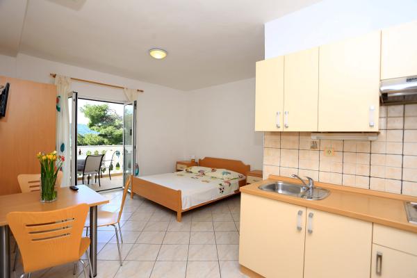 Bine ați venit, vă oferim cazare confortabilă, la prețuri accesibile. Studiouri mici, ideale pentru două persoane, situate în Zablaće, la 10 minute cu mașina de Sibenik. Loc liniștit și liniștit, ideal pentru o vacanță. Apartamentele sunt la primul rând de mare, plaja este la 10 metri de ușa apartamentului. În fața casei este o curte mare, așa că parcarea gratuită este asigurată pentru toți oaspeții noștri. Toate apartamentele noastre sunt dotate cu aer condiționat, au terase, TV / satelit și grătar. Toți oaspeții noștri au WiFi gratuit.