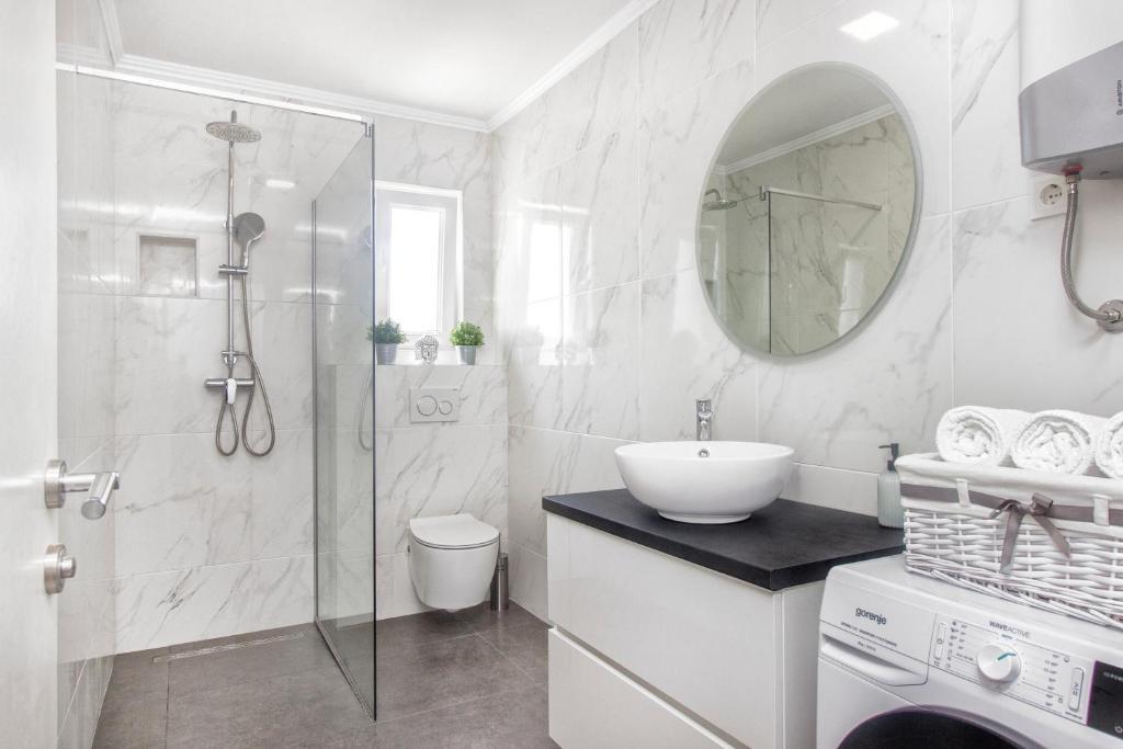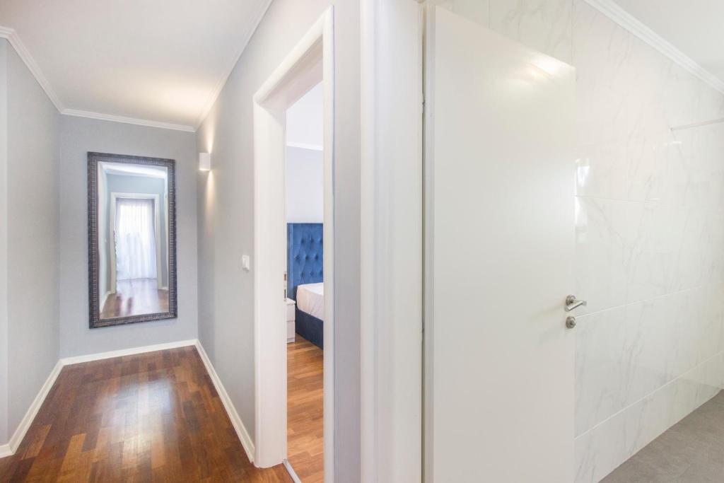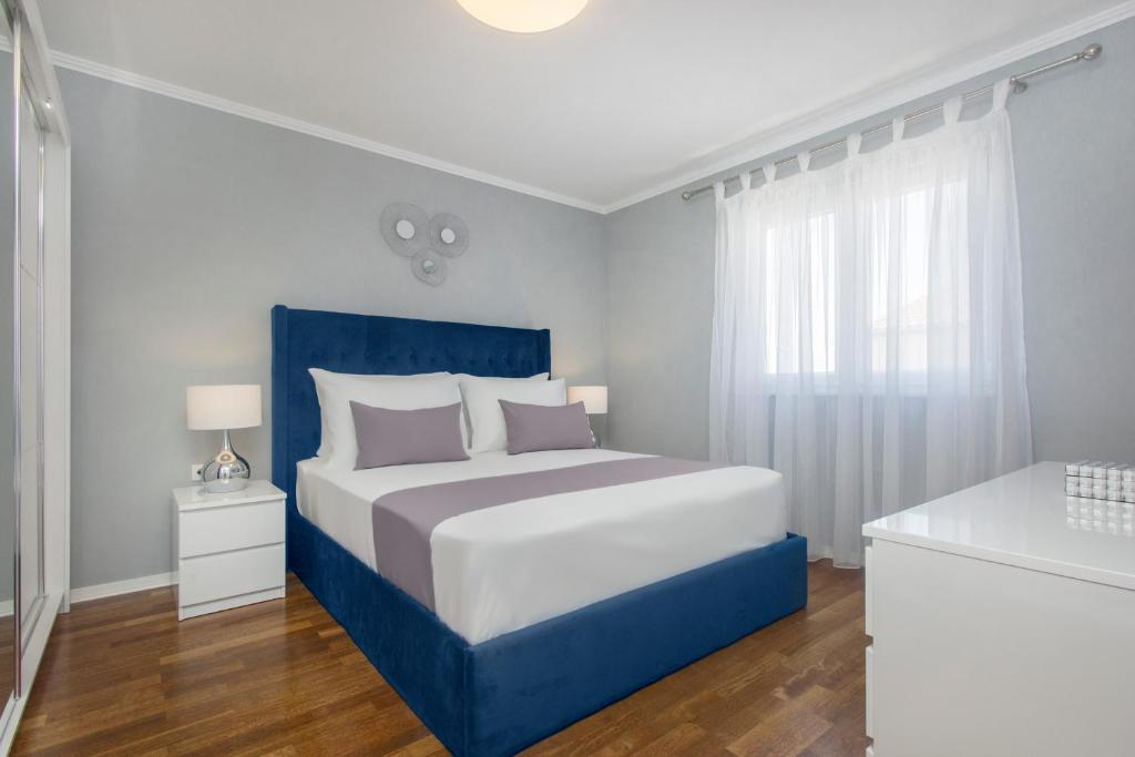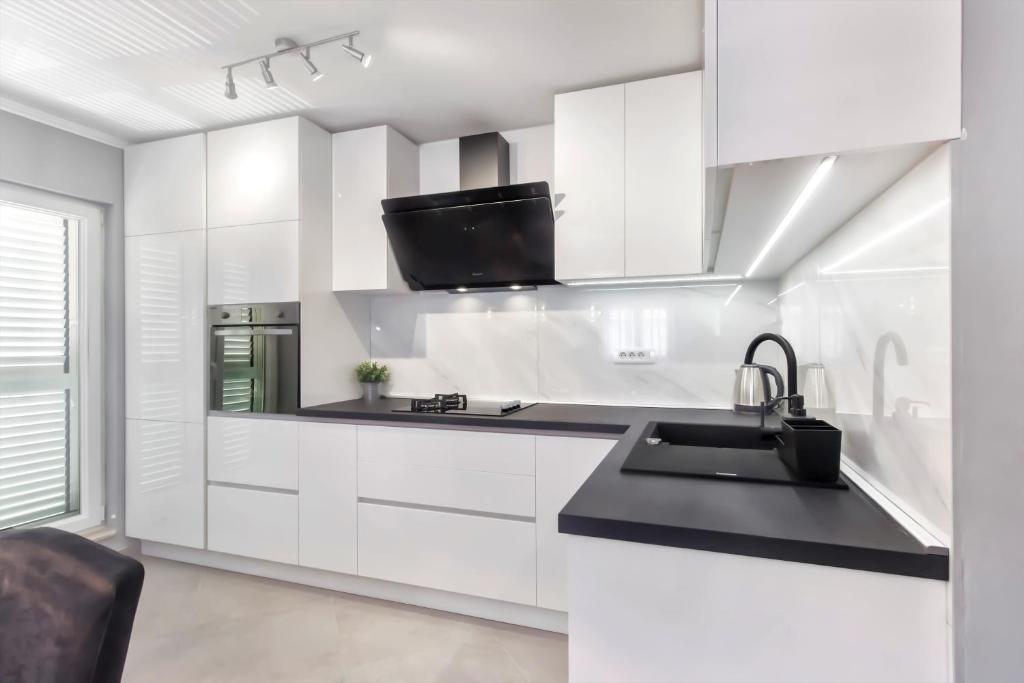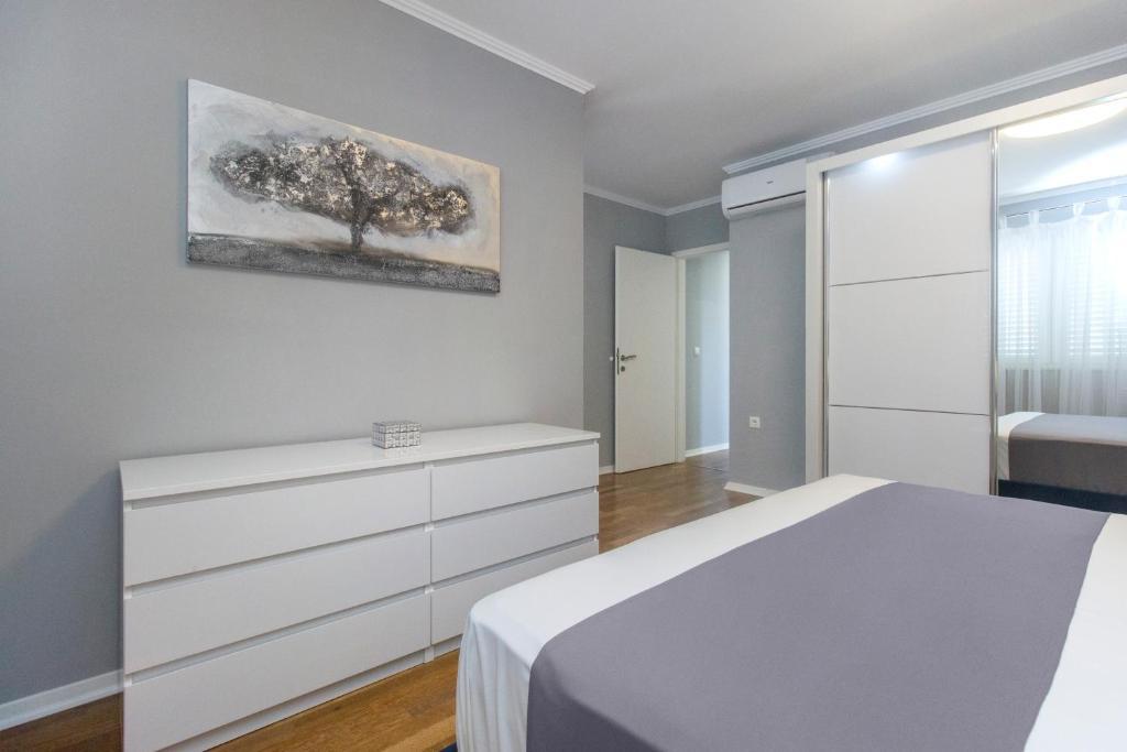 Apartament penthouse nou, de inchiriat pentru prima data. Suprafata apartamentului este de 95 mp, ultimul etaj al blocului. Apartamentul dispune de: 2 dormitoare mari, 2 bai, bucatarie complet utilata, cuptor, masina de spalat rufe, masina de spalat vase, 3 aparate de aer conditionat, internet, TV satelit, smart TV de 160 cm. Numărul maxim de oaspeți în apartament este de 5. Apartamentul se află la câteva minute de mers pe jos de plaja cu pietriș și autocampul Jasenovo. Loc de parcare privat securizat. Bine ati venit!