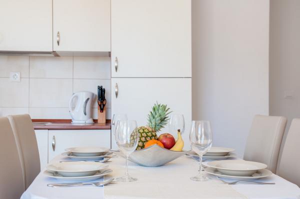 Apartamentul este destul de mare și frumos decorate. Ideal pentru familiile cu copii și pentru cuplurile tinere. In jurul apartamentul are un foișor mare, unde puteți avea un gratar sau doar stai și să se bucure. Plaja este frumos decorat cu o multime de umbră. Vă recomandăm cafeaua de dimineață într-o cafenea pe plajă, unde puteți sta într-un costum de baie, imediat după ce a ieșit din mare. De asemenea, vă recomandăm o plimbare romantica de noapte pe plajă și cina la un restaurant din apropiere, și înot zi și de relaxare pe plajă, închiriere bărci și plimbări cu pedale și o vizită la parcul acvatic din apropiere Solaris.