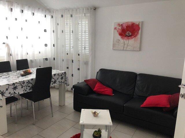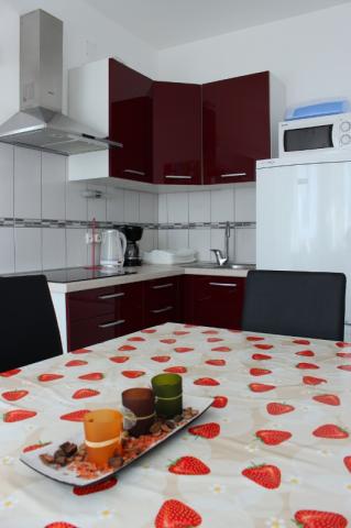 Casă de vacanță cu 3 apartamente, într-o poziție liniștită și însorită. La mare și plajă 50 m. 1 km de centrul orașului Žaborić, la 8 km de Sibenik, la 14 km de Primosten. Aproape de Parcul Național Krka și Kornat, hoteluri Solaris Pentru utilizare comună: grătar, tenis de masă, duș în aer liber. Parcare în parc pe teren. 3 Apartament 4 camere pentru 6 persoane, la etajul 1, 80 m2: Camera de zi, sat / TV / LCD, aer condiționat, ieșire la balcon (8m2, vedere la mare). Bucătărie (4 vesela din sticlă și ceramică) cu masă. 1 dormitor cu pat francez (160x200 cm), ieșire la același balcon. 1 dormitor cu pat francez (140x200cm). 1 cameră cu paturi supraetajate (2x90cmx200cm). Baie / WC. WC separat. Apartamente de 33 de camere pentru 4 persoane, la etajul 2, 40 m2 / apt. Verde și roșu: Living / sufragerie, sat / TV / LCD, aer condiționat, ieșire la balcon (2m2, vedere frumoasă la mare). Bucătărie deschisă (2 plăci fierbinți din sticlă și ceramică). 1 dormitor cu pat francez (140x200cm). 1 cameră cu paturi supraetajate (2x90 cmx200cm). Duș / W