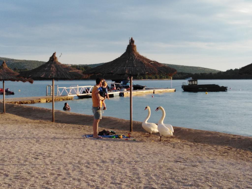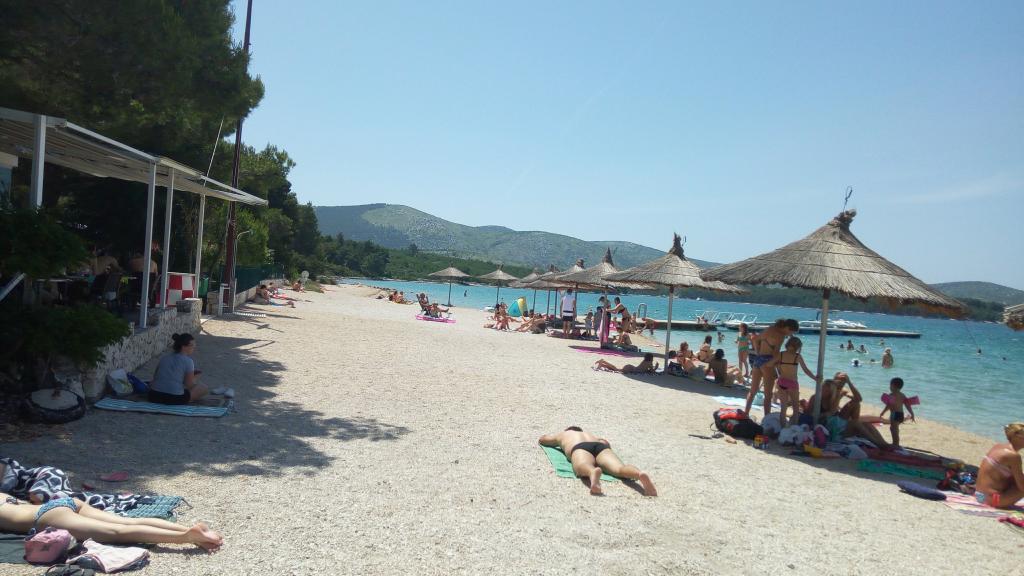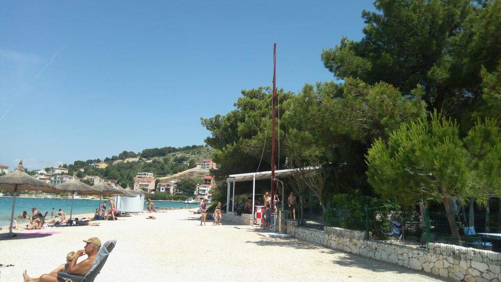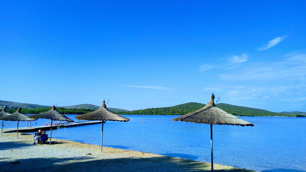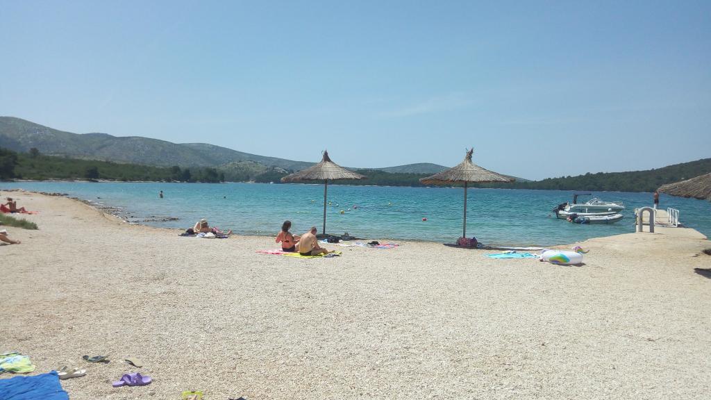 Foarte calmă, neaglomerată, plajă frumoasă din interiorul golfului, la care se poate ajunge cu un cărucior electric. Locație chiar lângă plajă, apartament foarte mare la parter - călătorie cu un scaun cu rotile electrice foarte grele prin terasă - doar un pas și prag - aveam propriile noastre căi de rulare - așa că pentru noi a fost OK; datorită nevoilor noastre foarte neobișnuite - o persoană cu dizabilități alături de noi a folosit un duș imens la un camping învecinat, în drum de la plajă. Apartament în stilul anilor 90 - poate nu de ultimă modă, dar bine păstrat și foarte curat, aer condiționat și echipament complet. Și cel mai important - JOŠKO - un om de aur - incredibil de amabil și de ajutor, cu care poți avea o discuție drăguță, bea ceea ce îi place oricui să joace biliard și tenis de masă. JOŠKO - MULTUMESC !!! TOATE CELE BUNE !!! NE VEDEM ÎN CURÂND !!!