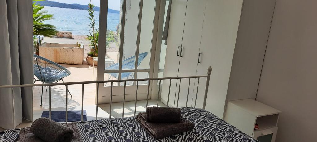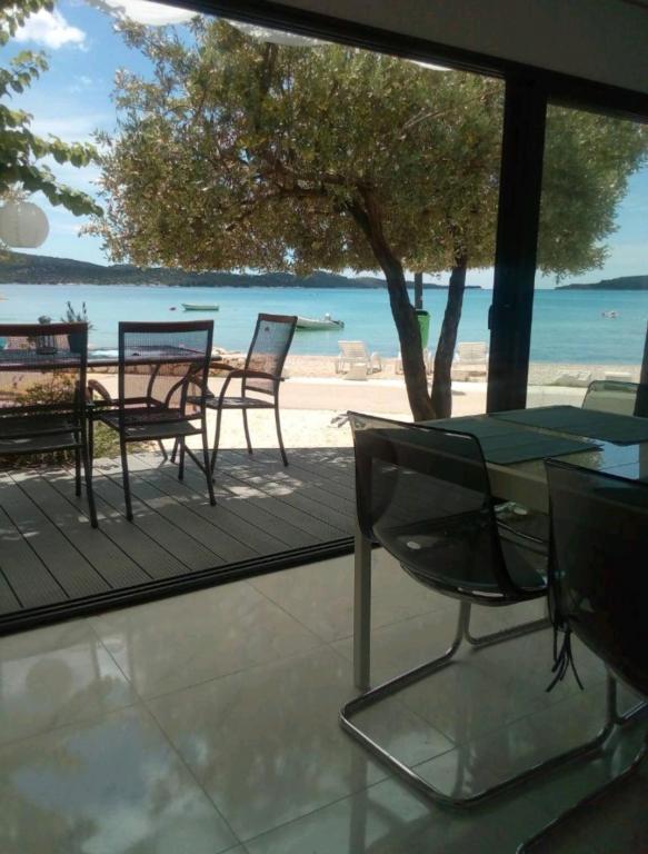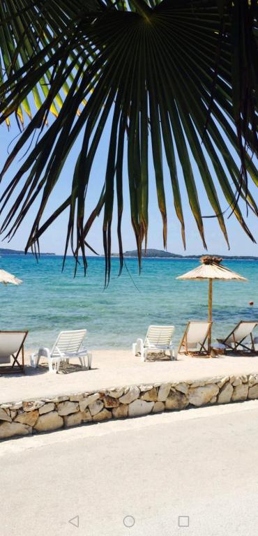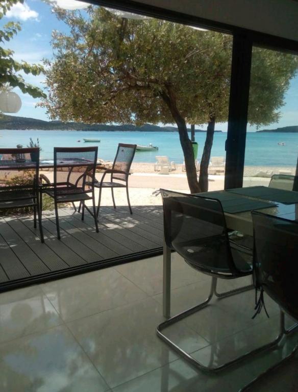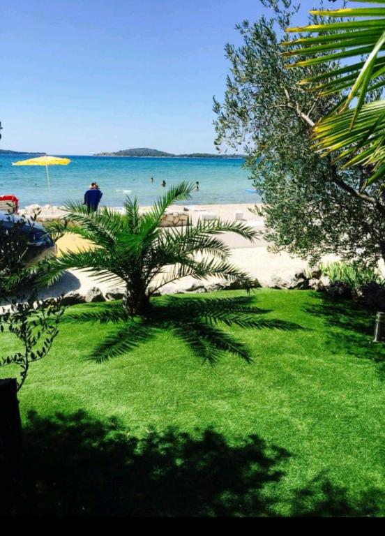 Apartamente complet și modern echipate într-un loc liniștit Zaboric, lângă Sibenik, situat pe primul rând până la mare. Plaja se află chiar în fața clădirii, la o distanță de 5 metri de apartament. Toate apartamentele au vedere la mare. Toate apartamentele sunt echipate cu toate aparatele de uz casnic de la mașină de spălat vase, mașină de spălat, cuptor cu microunde, plită, cuptor, ceainic, frigider cu congelator, TV SAT, internet WI-FI, uscător de păr, prăjitor de pâine. Unele apartamente au o mașină de gheață. Toate apartamentele au parcare gratuită și utilizarea gratuită a grătarului în curte, precum și scaune gratuite pe plajă. Animalele de companie sunt permise. Posibilitatea de a folosi dane pentru o barcă de până la 7 metri și de a parca pentru o remorcă. La cerere, pătuț de copil. Oaspeții se pot relaxa pe un hamac la umbra grădinii. Este posibil să închiriați o barcă și un ski ski lângă casă. Există o trambulină cu apă pentru copiii din apropiere, precum și o trambulină terestră.