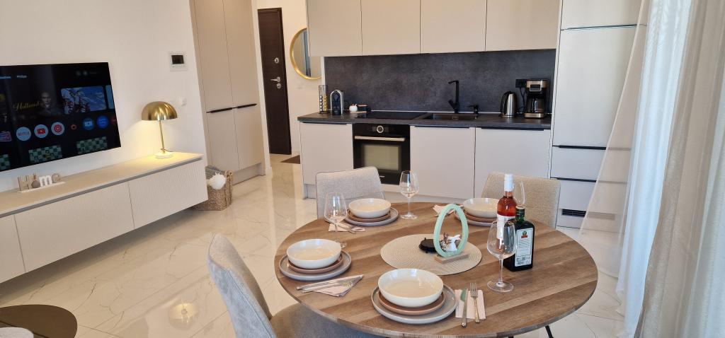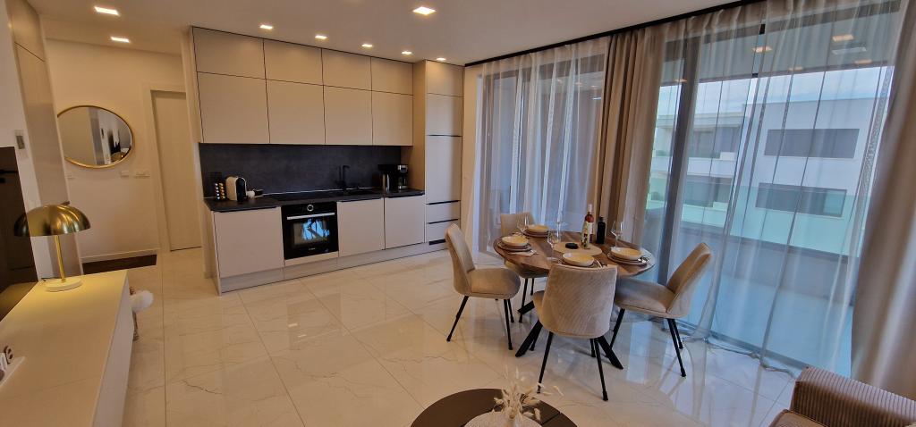 Ambiente Borik este un apartament nou pe mare, care oferă o combinație perfectă de confort, spațiu și ambianță. Este situat într-o locație excelentă "Borik Zadar", lângă plaje bine întreținute și Hotelul Falkesteiner. Livingul este spațios și luminos, ideal pentru relaxare și socializare. Bucătăria este complet utilată cu toate electrocasnicele și ustensilele de gătit necesare. Cu două dormitoare, fiecare dotat cu paturi confortabile și mobilier elegant, și două băi, oferă suficient spațiu pentru a găzdui 2 cupluri sau un grup de până la 4 oaspeți. Terasa mare oferă spațiu suplimentar pentru relaxare în aer liber. Pe terasă vă puteți bucura de micul dejun sau de o băutură seara, având intimitate și un colț liniștit pentru relaxare. Apartamentul este mobilat luxos, cu detalii atent selectate. Există, de asemenea, o parcare privată, precum și un garaj, care asigură confortul și siguranța oaspeților care sosesc cu mașina. Pe scurt, acest apartament de la malul mării oferă tot ce ai nevoie pentru un sejur confortabil. Liftul a fost binevenit după o plimbare obositoare de-a lungul malului apei din Zadar.