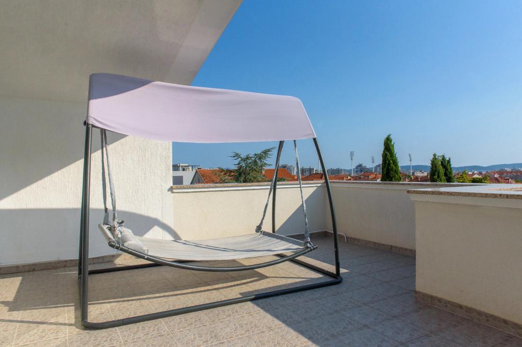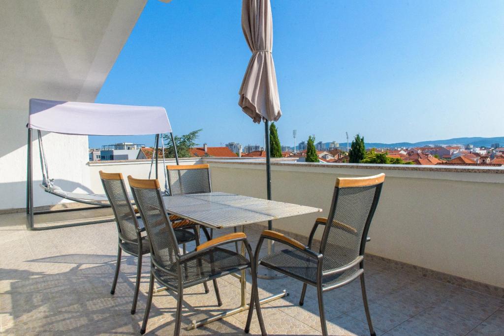 Va oferim un apartament frumos cu 3 camere cu 2 dormitoare, o toaleta moderna cu geam si masina de spalat, o bucatarie mare deschisa conectata la un receptor si aer conditionat. În spatele ei, te așteaptă o terasă mare cu o priveliște minunată asupra orașului și a mării, unde te poți bucura și relaxa. Unitatea este situată la 30 de minute de mers pe jos de frumoasa plajă a orașului și de centrul istoric al orașului. 10 minute cu mașina sau taxiul. Parcare direct in fata blocului.