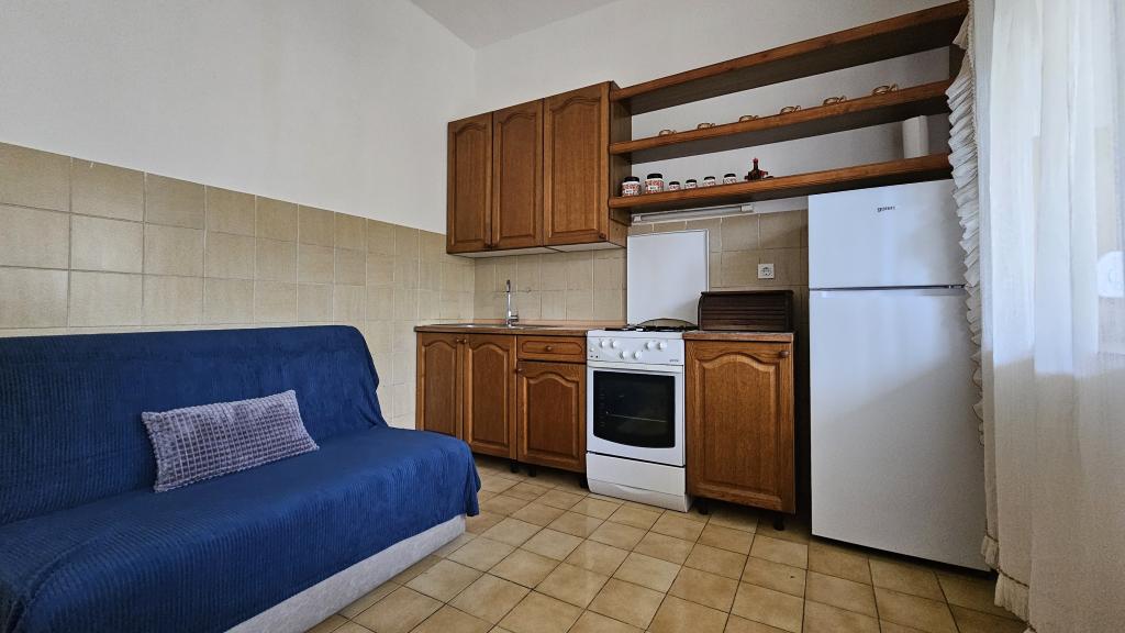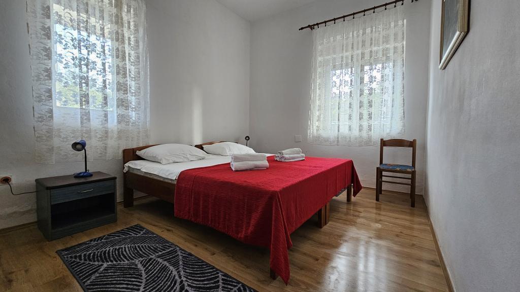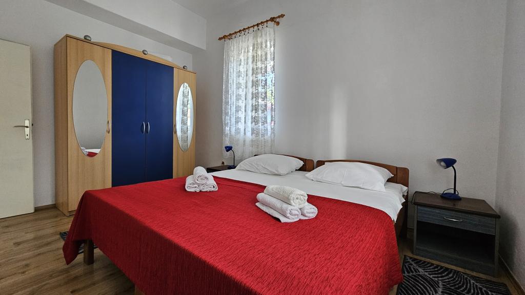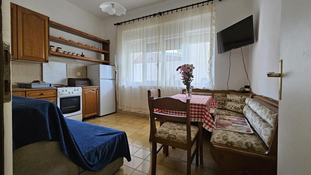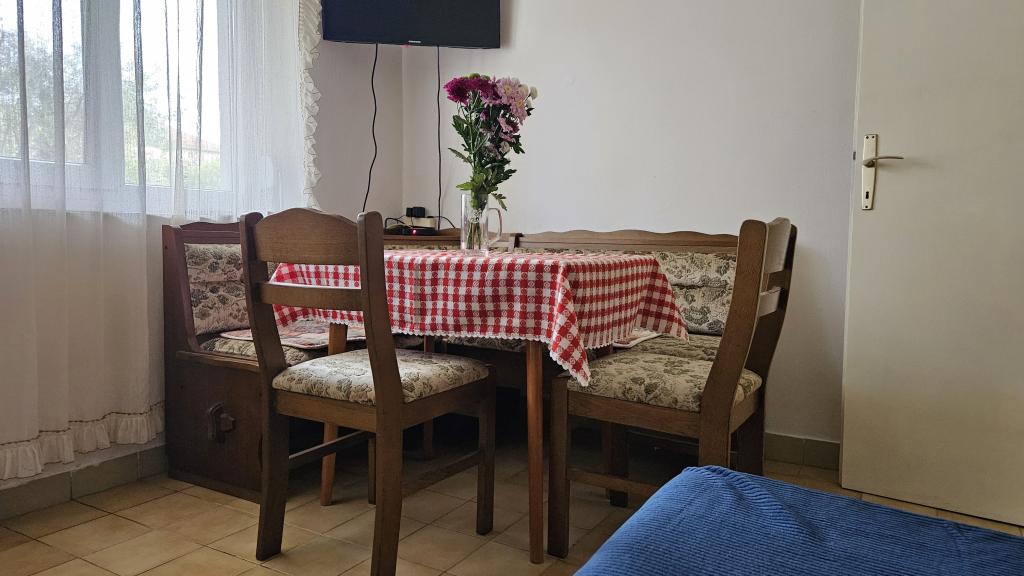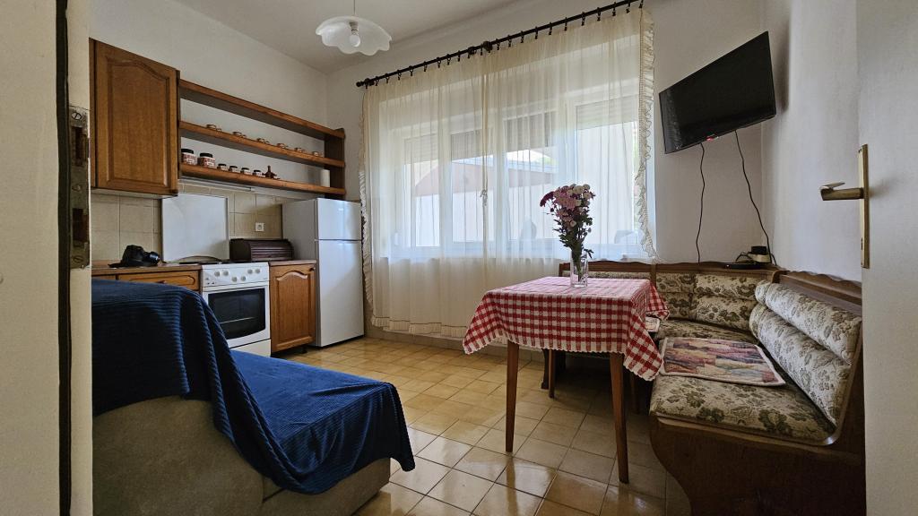 Apartamentul este situat intr-o zona linistita a orasului, in cadrul unei case familiale cu mai multe unitati rezidentiale. Apartamentul este situat la parter si dispune de loc de parcare propriu. Locul de parcare este deschis in timpul zilei si este inchis dupa ora 22:00 cu usa de fier pentru care aveti cheie. Cu apartamentul, ai o masă pentru a sta lângă grădină. Plaja Marex cu cafeneaua, magazinul, restaurantul, parcul pentru copii proaspat renovat se afla in imediata apropiere, iar in centrul orasului puteti merge pe jos in aproximativ zece minute. De fapt, sunt multe la îndemâna ta. Aer condiționat, TV, internet sunt disponibile în unitate. Unitatea de cazare este concepută pentru două persoane plus posibilitatea de a folosi un pat extensibil suplimentar pentru o a treia persoană, fiind disponibil și un pătuț de călătorie.