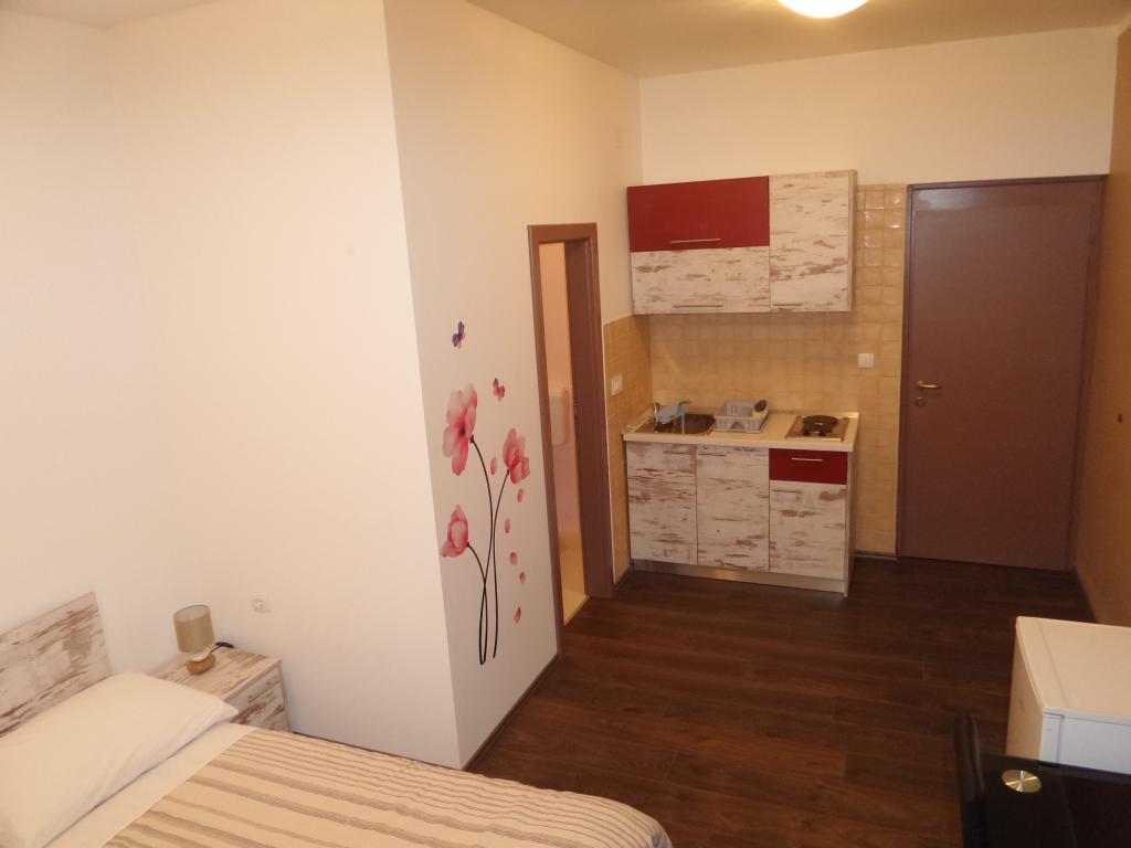 Închiriez apartamente complet mobilate pentru 2, 3, 4 persoane și camere pentru 2 persoane. Acestea sunt compuse dintr-un living cu o masă de luat masa, o bucătărie cu toate ustensilele necesare, plită, frigider și congelator (camerele au o bucătărie comună) și un pat. Fiecare suită și cameră are o baie privată cu duș. Apartamentele sunt dotate cu TV cu ecran plat, TV prin satelit și aer condiționat. Utilizarea gratuită a internetului. Parcare gratuită în fața proprietății. Persoanele suplimentare pot sta la un cost suplimentar de 15 EUR / persoană. Posibilitatea unui transport ieftin cu taxiul către și dinspre apartament.