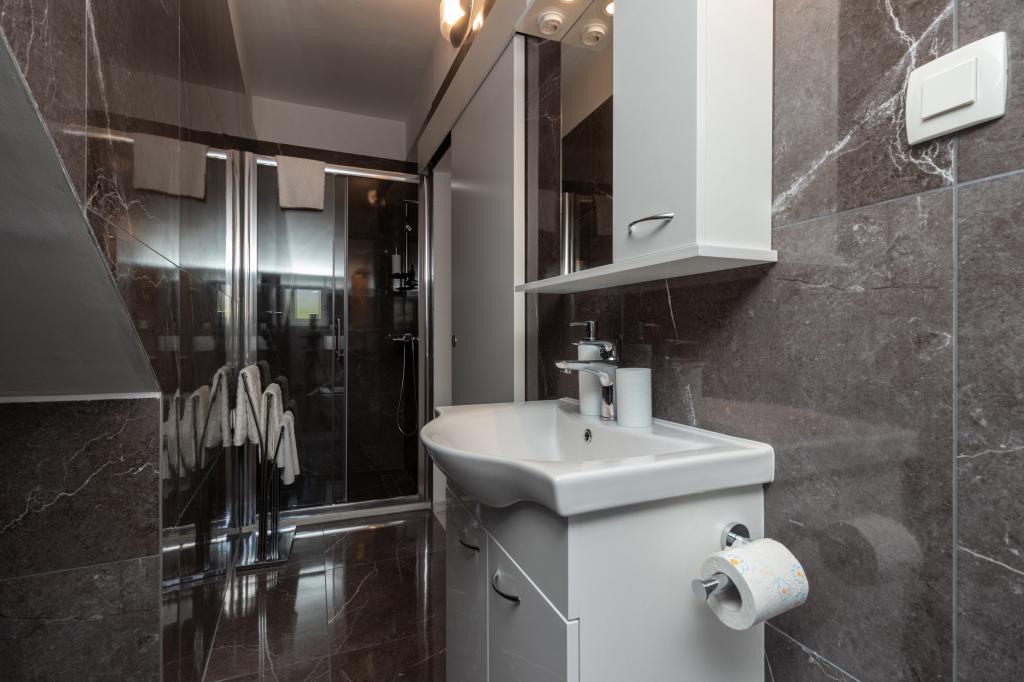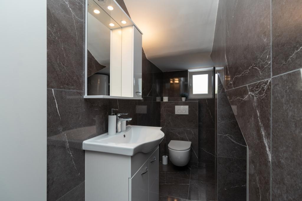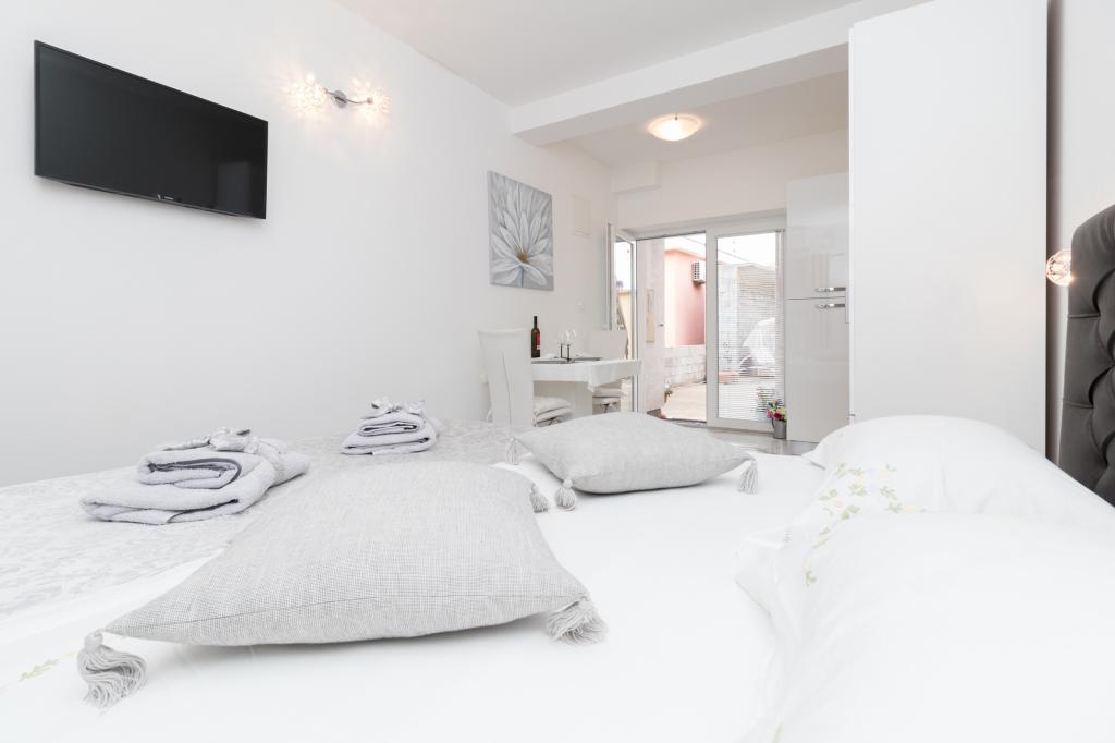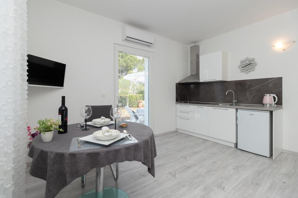 Apartamentele modern echipate sunt situate într-un mediu liniștit, cu o grădină amenajată, ideală pentru relaxare și petrecerea timpului în aer liber. Proprietatea oferă combinația perfectă de confort și funcționalitate, iar fiecare apartament a fost decorat cu grijă pentru a asigura oaspeților o ședere plăcută. Locația este extrem de practică, gara se află la doar 10 minute de mers pe jos, iar aeroportul la 15 minute de mers cu mașina, ceea ce permite sosirea și plecarea ușoară. Dacă sosiți cu mașina, există posibilitatea de a parca în siguranță în cadrul proprietății. Toate facilitățile necesare, cum ar fi magazine, restaurante și cafenele, sunt în apropiere, în timp ce plaja cu pietriș se află la doar 7 minute de mers pe jos.