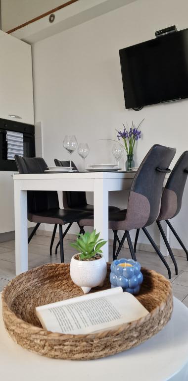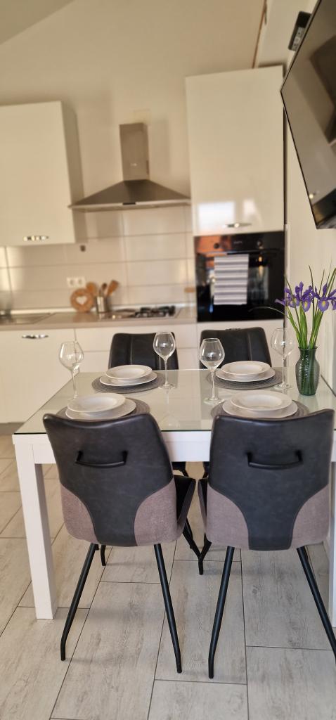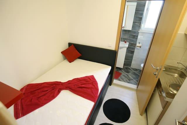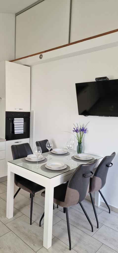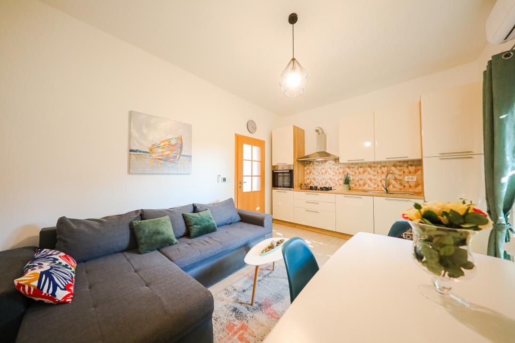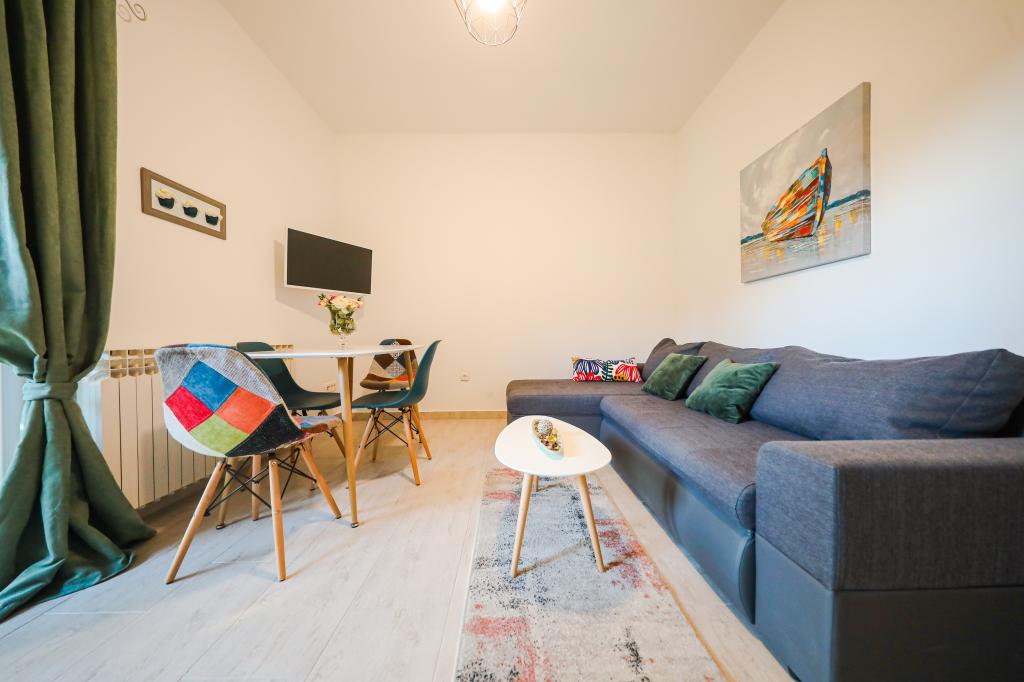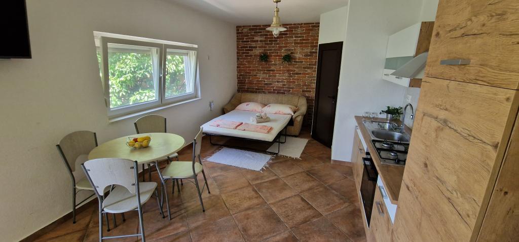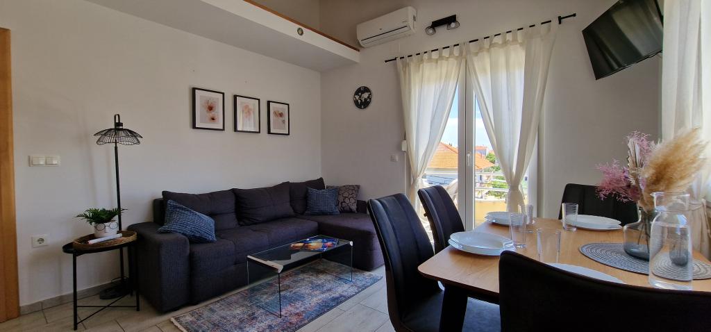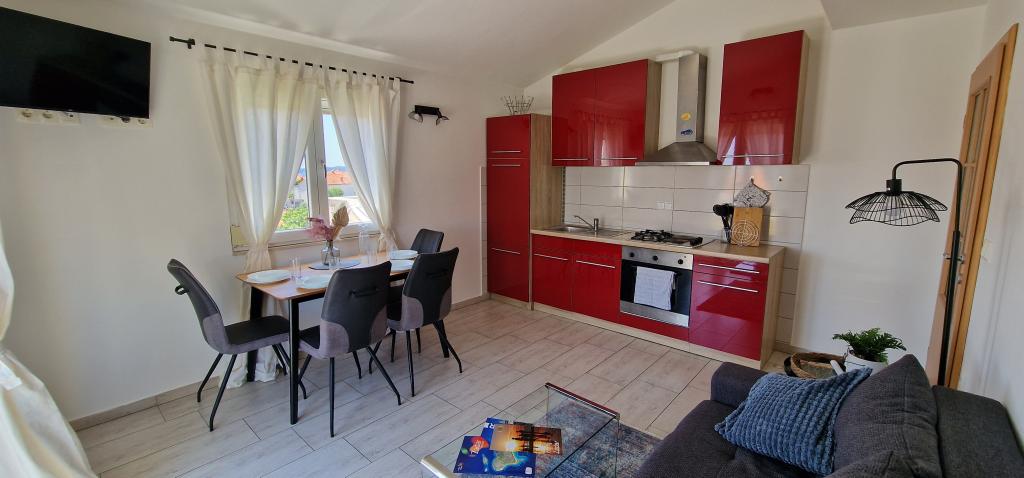 Apartamentele Iva sunt situate într-o locație ușor ridicată, într-o moderna vila a doua la 5 km de orașul vechi. Oferta, în plus față de acces Wi-Fi și parcare privată, în mai multe 2 apartamente veți găsi camere elegante, cu aer condiționat în fiecare dintre ele (3 Clima pe persoană), living / bucatarie mobilata cu stil și un televizor LCD, spațioasă terasa unde vă puteți relaxa și bucura de vedere, baie modernă cu cabină de duș, etc apartamente mai mari constau din două dormitoare, un pat dublu într-una și paturi pentru o persoană care se extinde într-un pat pentru 2 persoane în al doilea dormitor. Canapea în camera de zi, dacă este necesar, să fie transformat într-un pat pentru 2 persoane. Bucataria este dotata cu tot ce este necesar pentru odihnă confortabil: frigider, cuptor, mașină de spălat vase (1 apartament) ... Studio este un spațiu mai mic de 25m2, care se întinde pe 2 etaje, și este adaptat cazare pentru 2 persoane. Se compune din 1 dormitor cu pat dublu la etajul superior și o bucătărie și o baie pe partea de jos. Toate apartamentele sunt recent renovate.